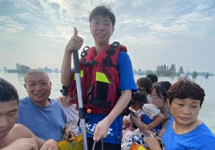 穆铭森,土木工程检测(W)1801班学生。7月21日,河南新乡卫辉遭遇洪涝灾害,穆铭森第一时间报名参加新乡市峪河镇穆家营村抗洪志愿者。看着已经漫到半腰的洪水,穆铭森立即穿上冲锋衣,坐上皮划艇,开始了受灾村民的转移工作。从凌晨六点忙到晚上12点,暴雨第一天,穆铭森共安全转移受灾村民120余人。从洪水爆发第一天起,穆铭森同学一直冲锋在一线,每天参与抗洪救援工作从凌晨六点忙到夜晚,并为受灾村民捐赠了面包和矿泉水。受灾村民自发为他写了感谢信。
