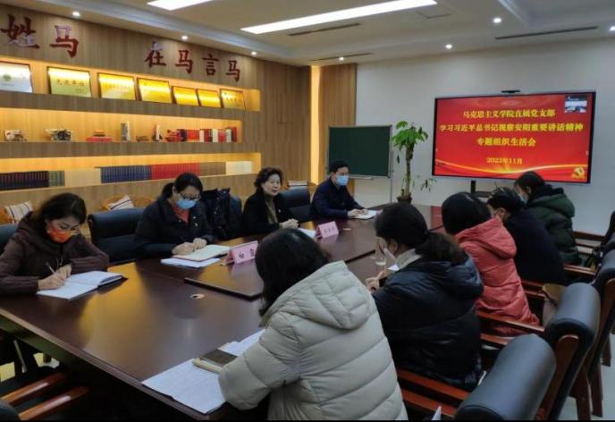 为深入学习贯彻落实党的二十大精神和习近平总书记视察安阳重要讲话精神,11月29日,马克思主义学院直属党支部召开“深入学习习近平总书记视察安阳重要讲话精神,大力弘扬红旗渠精神”专题组织生活会,支部全体党员以线下+线上形式与会研讨,党委书记周保平以普通党员身份参加会议并做讲话。会议由马克思主义学院直属党支部书记焦红强主持。