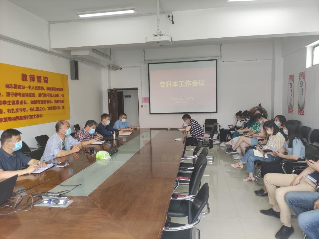 2022年5月22日上午,土木与交通工程学院在实训楼5330会议室召开2022年专升本考试工作会议,传达上级有关工作会议精神,部署安排学院2022年专升本考试工作。学院领导班子、工学办和全体辅导员参加会议。