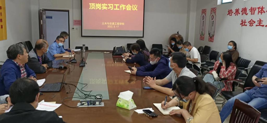 为进一步做好2022届学生顶岗实习各项工作,提高顶岗实习管理效能,促进顶岗实习管理高质量发展,2022517日下午,我院在实训楼5330会议室召开顶岗实习工作会议,学院领导班子和教研室主任现场参会,全体教师线上参会,会议由副院长谭建领主持。