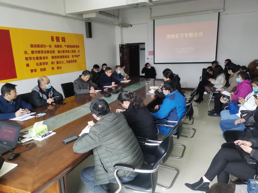 为深入贯彻落实教育部等八部门印发的《职业学校学生实习管理规定》(教职成〔2021〕4号)文件精神,依据《黄河水利职业技术学院顶岗实习管理办法》,进一步加强我院2019级学生顶岗实习的管理,确保顶岗实习工作平稳有序进行,我院于2022年3月1日在实训楼5330召开顶岗实习专题会议。会议由副院长谭建领主持,参会的有党总支书记赵杰、院长王付全、副院长侯根然、副书记管欣、校企合作办主任孟宪金,以及全体教师。