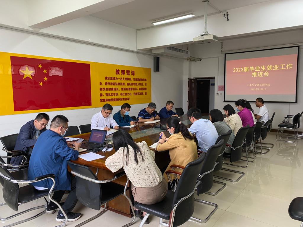 为进一步做好学院毕业生就业工作,科学高效持续推进毕业生充分高质量就业,发挥就业组织作用,土木与交通工程学院于2023年6月2日下午在实训楼5330会议室召开2023届毕业生就业工作会议,学院领导班子、各教研室主任、毕业班辅导员及工学办人员参加会议,会议由副院长谭建领主持。