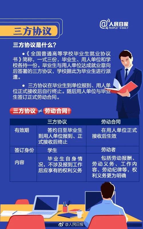 有的企业在和学生签订三方协议后,要求学生毕业前到公司实习,企业在学生毕业后根据其实习表现及签订劳动合同的原则,协商签订劳动合同,也可能出现不签订的情况。因此,对于毕业生来说,签订了三方协议并没有进入就业的“保险箱”,还需要接受用人单位实习期、试用期的进一步考察。