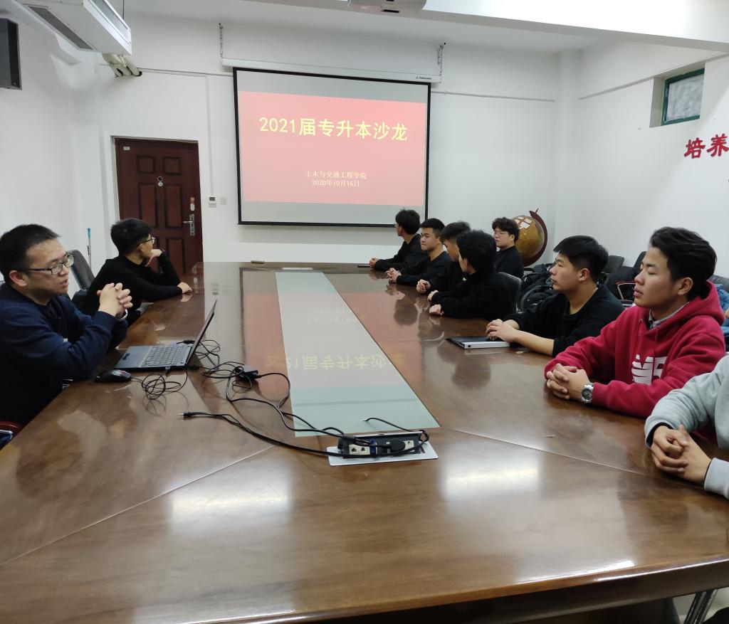 2020年10月16日,我院于实训楼5330召开2018级专升本沙龙。会议由院工学办主任孟宪金主持,参会人员包括工学办朱益兵老师和2018级预报名参加专升本的学生代表。