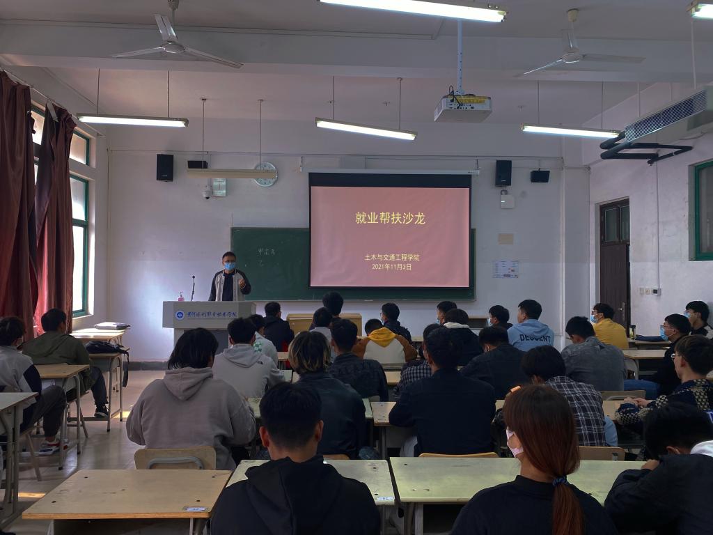 2021年11月3日,土木与交通工程学院在教学楼3314举办就业帮扶沙龙,此次座谈会由校企合作办朱益兵老师主持,参加学生为56名就业困难及需要帮扶的2022届毕业生。