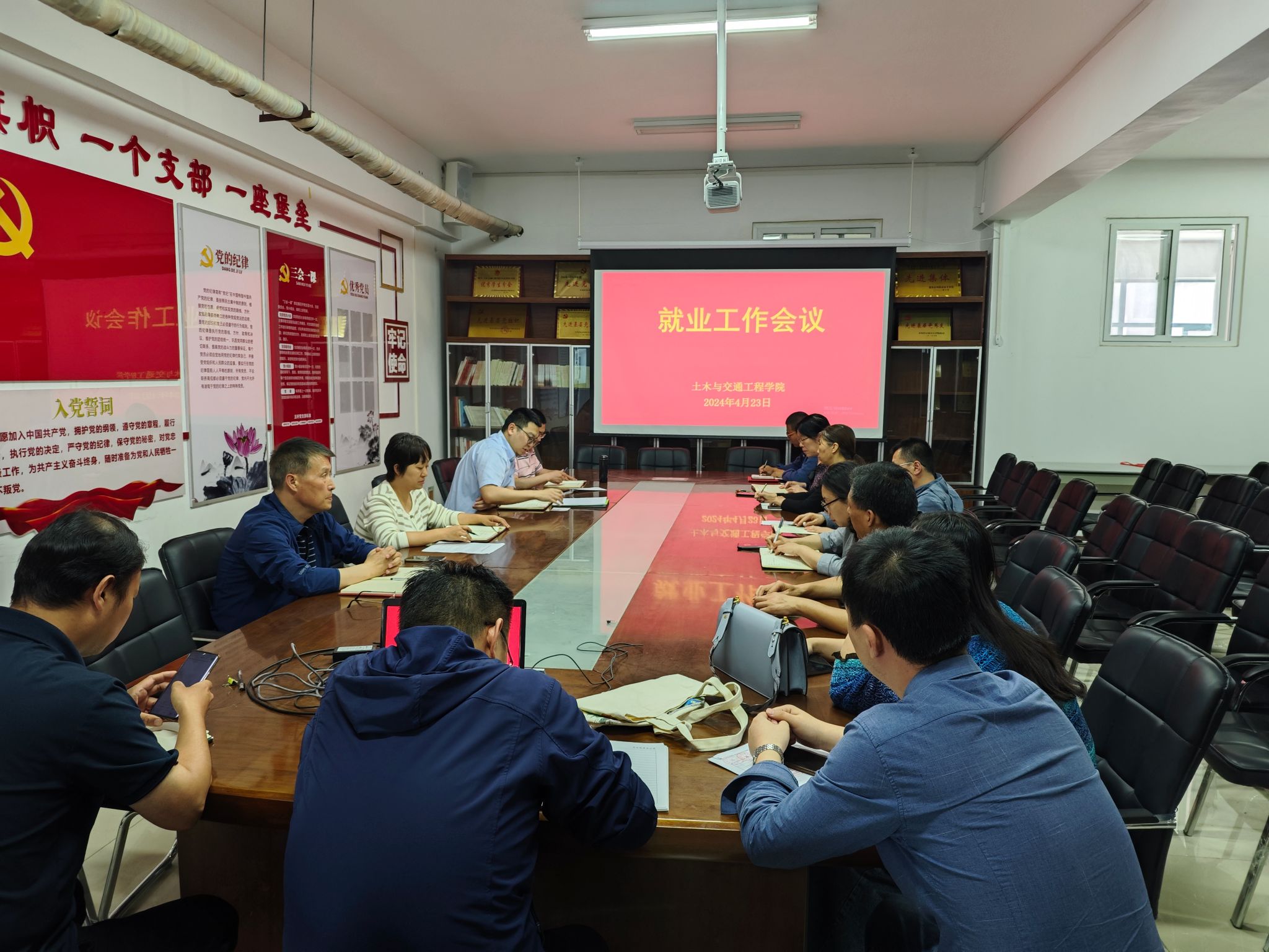 2024年4月23日,我院在实训楼5319召开2024届毕业生就业工作会议,学院党总支书记耿亚杰、副书记孟宪金、副院长侯根然、副院长职保平以及各专业教研室主任参加会议。