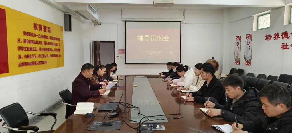 12月4日上午,土木与交通工程学院在SY5330召开辅导员工作会议,全体学工人员参会。会议上,党总支副书记管欣首先传达了上级部门关于学校安全教育工作的相关要求和指示,强调安全教育工作的重要性和紧迫性,并就辅导员开展宿舍安全、安全班会、防踩踏和极端天气等提出了具体要求,切实保障全体师生的生命财产安全。