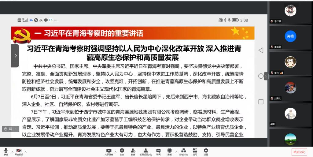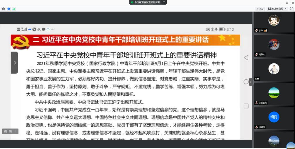 各党支部学习的主要内容为习近平总书记在党史学习教育动员大会上的讲话、习近平在中央党校中青年干部培训班开班式上发表的重要讲话。