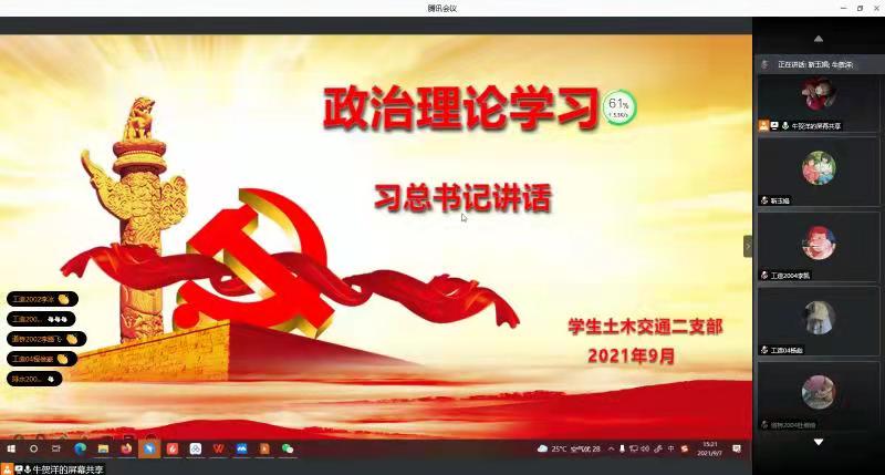 2021年9月7日下午,土木与交通工程学院各党支部分别采用线上、线下会议形式进行政治理论学习。