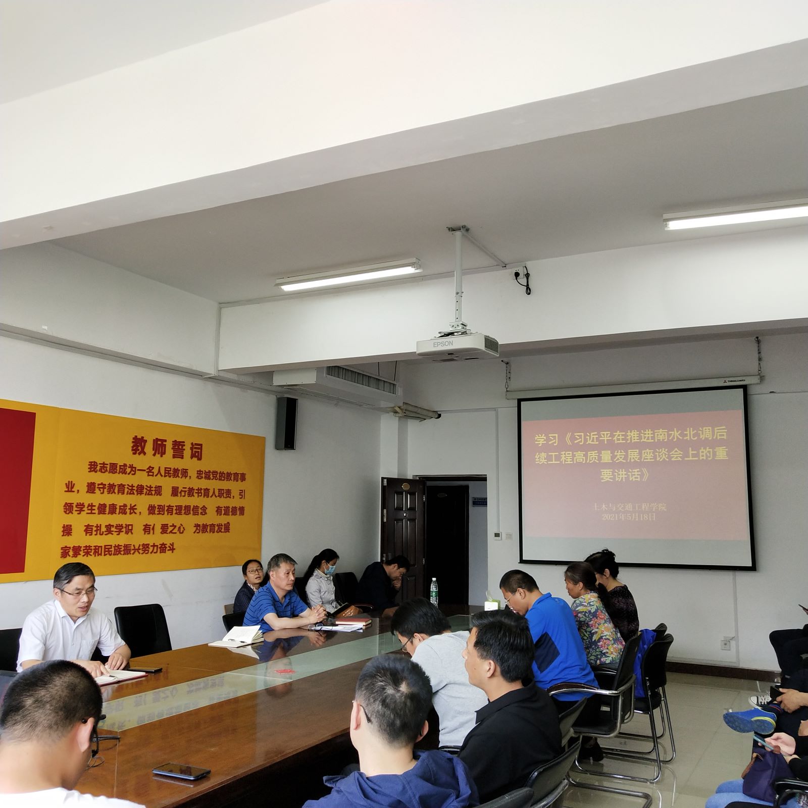 土木与交通工程学院传达学习习近平总书记在推进南水北调后续工程高质量发展座谈会上重要讲话精神