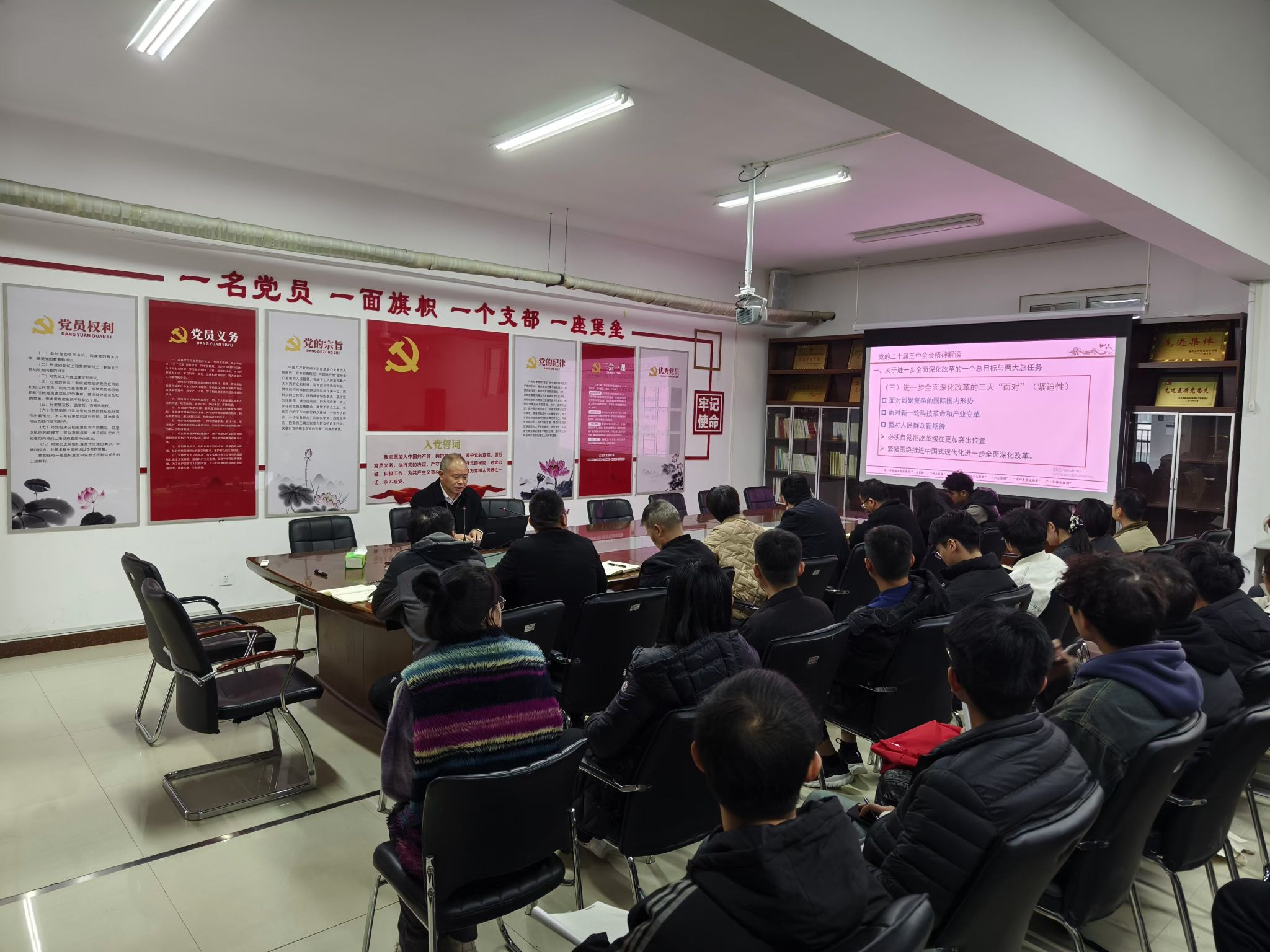 杨士恒指出,党的二十届三中全会是在以中国式现代化全面推进强国建设、民族复兴伟业的关键时期举行的一次十分重要的会议,全会作出的重大战略部署,事关党和国家事业前进方向,事关改革开放和现代化建设全局。党课紧紧围绕学习贯彻党的二十届三中全会精神,系统阐述了进一步全面深化改革的一个总目标与两大总任务、“七大聚焦”和“六大原则”、十四大系统部署、“一个特别强调”、统筹推进教育科技人才体制机制一体改革等方面的内容。党课传达了全国教育大会精神及学习贯彻的重要意义,并针对当前我校学生思想热点问题和校园安全工作进行了复盘分析。