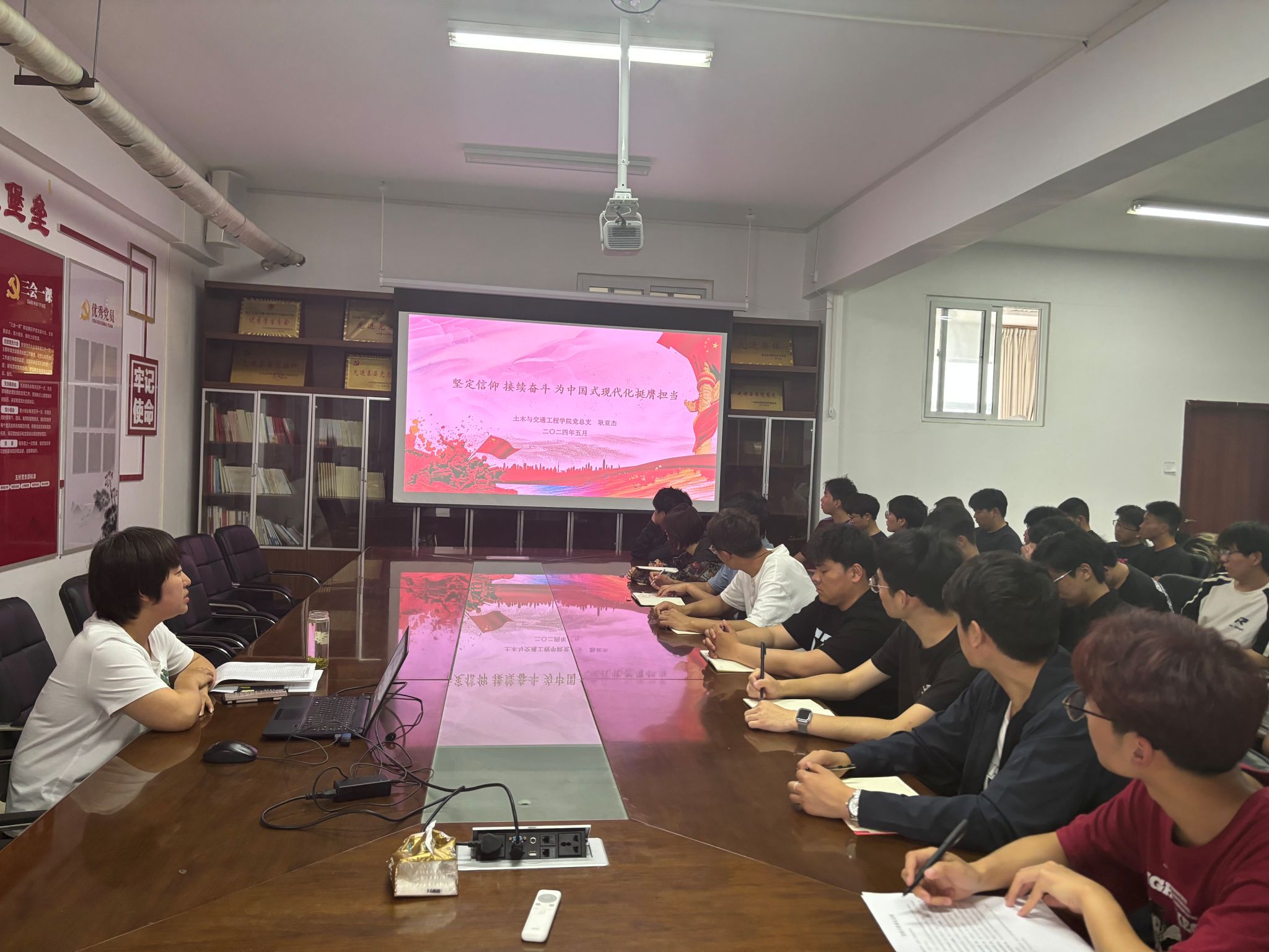 在2024年5月16日,土木与交通工程学院党总支书记耿亚杰在SY5319为我院第五十五期党校培训学员带来了一场题为《坚定信仰 接续奋斗 为中国式现代化挺膺担当》的专题党课。此次党课旨在深化学生对党的认识,明确入党动机,强化党员使命意识,清晰党员义务与权利,并系统讲解入党流程,激励青年学子积极向党组织靠拢。