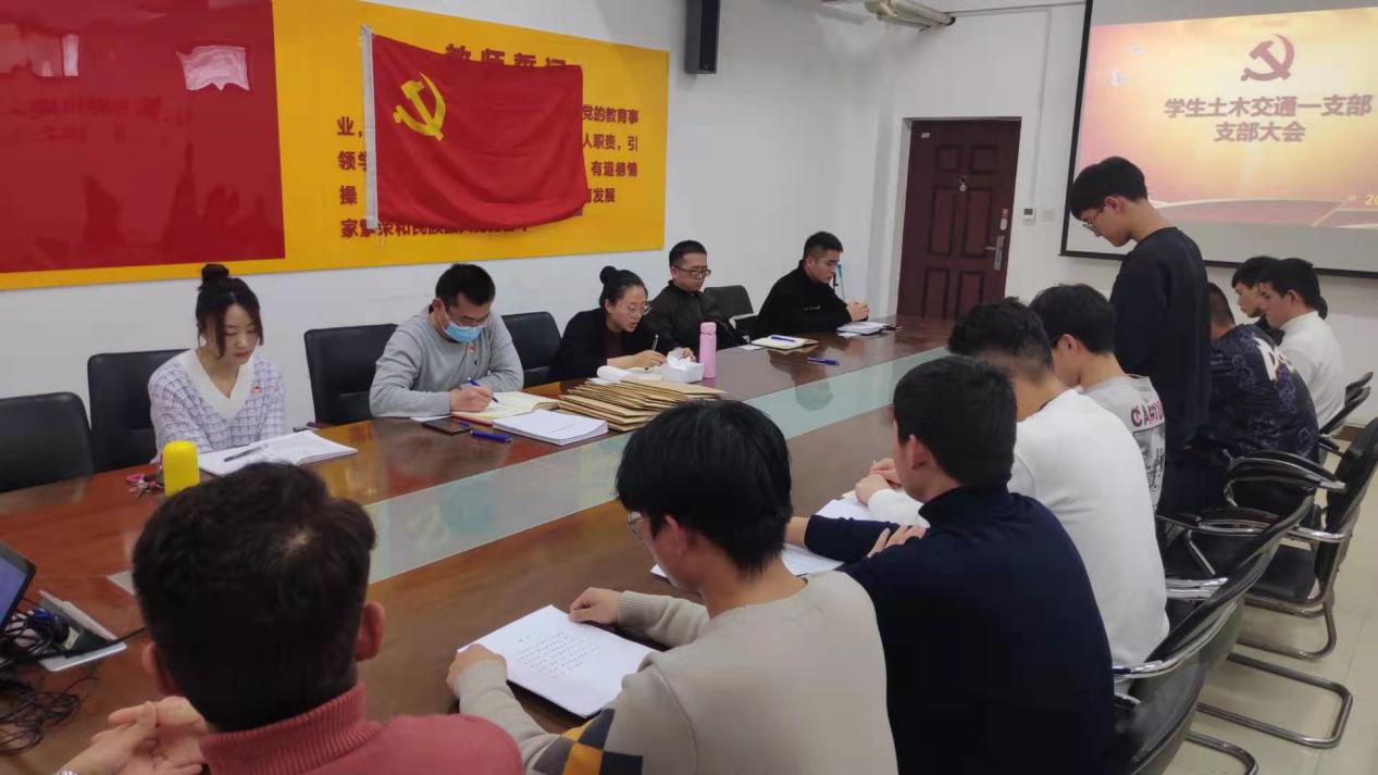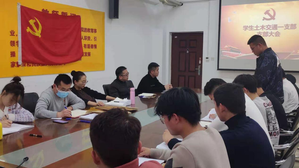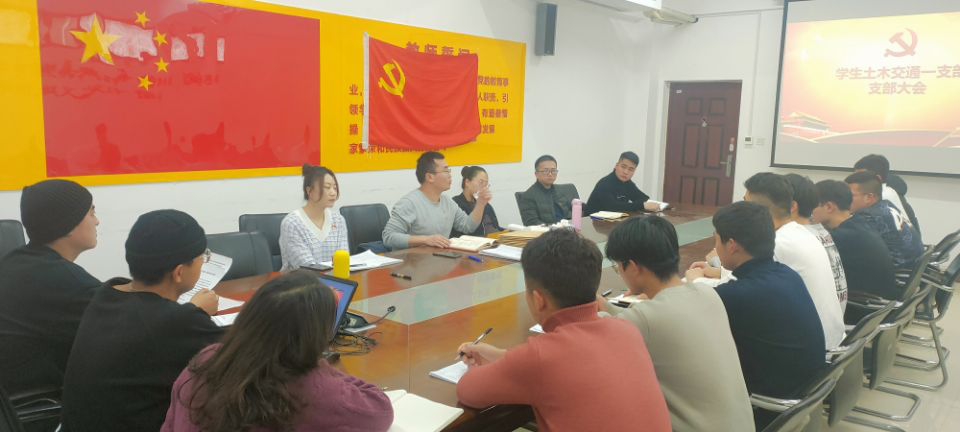 2020年12月8日,我院学生土木交通一支部在SY5330召开支部大会,讨论预备党员发展事宜。参加这次大会的人员有:学生土木交通一支部书记孟宪金、组织委员李峥、宣传委员张斯琪、教师党员朱益兵、学生党员任帅兵以及张永航等10名新发展的发展对象。