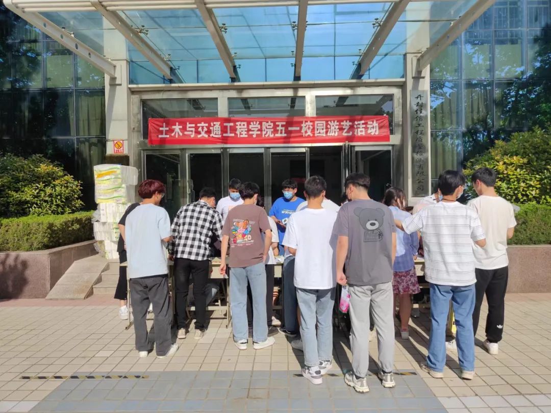 为丰富同学们的假日生活,给五一假期增添一丝乐趣,打造一个充满爱与温暖的校园。土木与交通工程学院5月1日当天开展了庆“五一”校园游艺系列活动,包括“飞包夺宝”、“青春向前冲”、“兄弟齐心”、“背靠背,我最强”等四项趣味游艺活动。