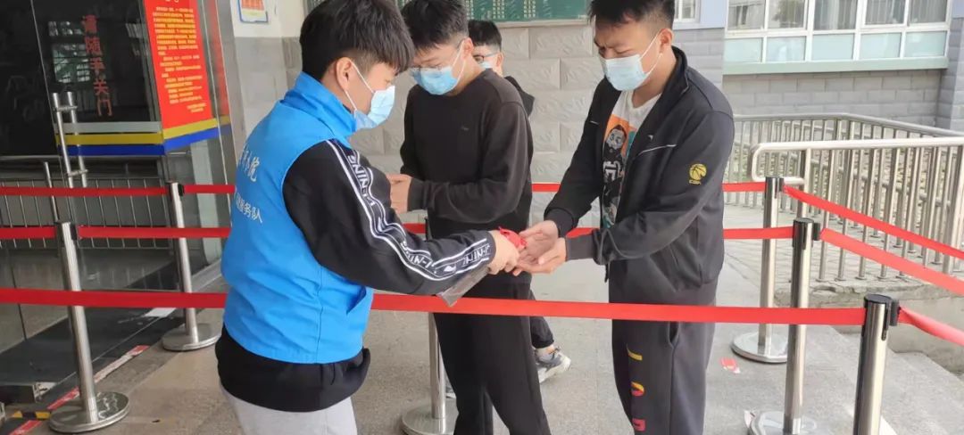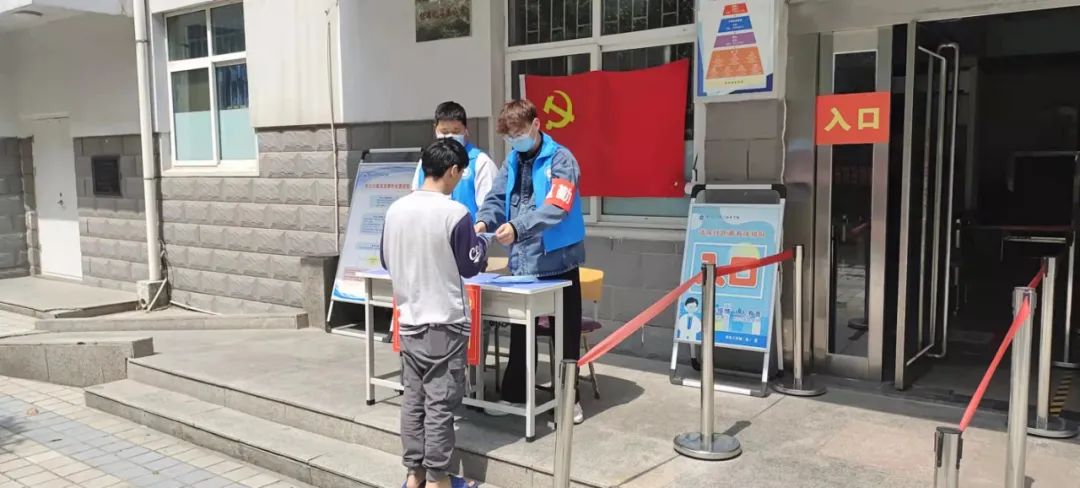 队员们坚守在学院各个宿舍楼的出入通道,负责队伍引流、秩序维护、清洁消毒,提醒同学们注意防疫需求,筑牢疫情防控的坚固防线。队员们用严谨的态度和如火的热情开展志愿服务,他们众志成城,用实际行动践行了“奉献、友爱、互助、进步”的志愿精神,用青年党员的担当坚守印证初心使命,让党旗飘扬在抗疫一线。