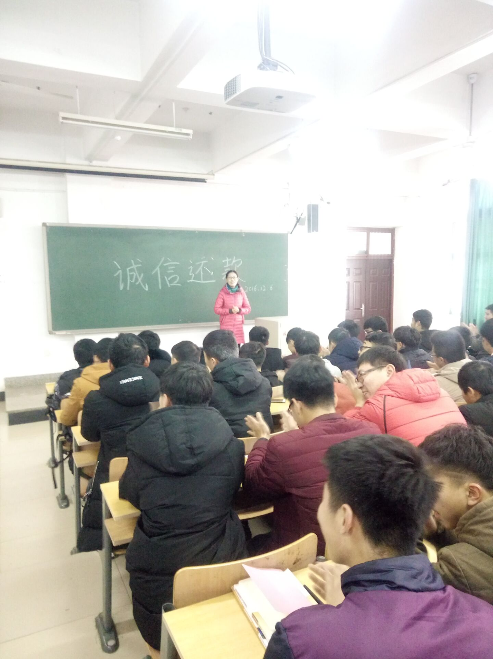 为进一步做好国家助学贷款工作,加强大学生的诚信意识和社会责任感,2016年12月6日,我院资助教师孙娟娟在2号教学楼501教室组织举行了“诚信还款” 知识教育。