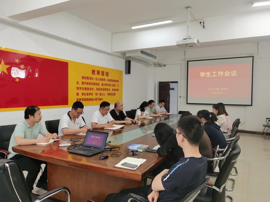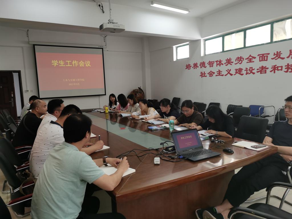 2021年5月21日上午,土木与交通工程学院党总支副书记师军良在SY5330会议室主持召开学生工作会议,全体辅导员参加会议。