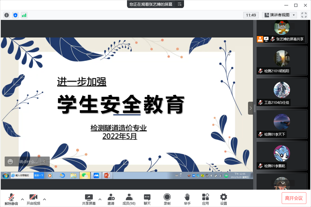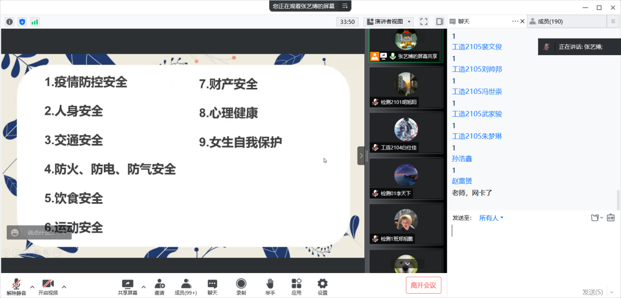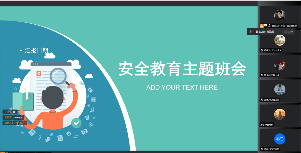 学院会议后,各辅导员分别组织学生召开安全教育主题班会,传达会议精神。辅导员们的谆谆教导和苦口婆心的声声劝诫,既给同学们敲醒了警钟,也让同学们真切感受到老师对他们的爱与呵护。