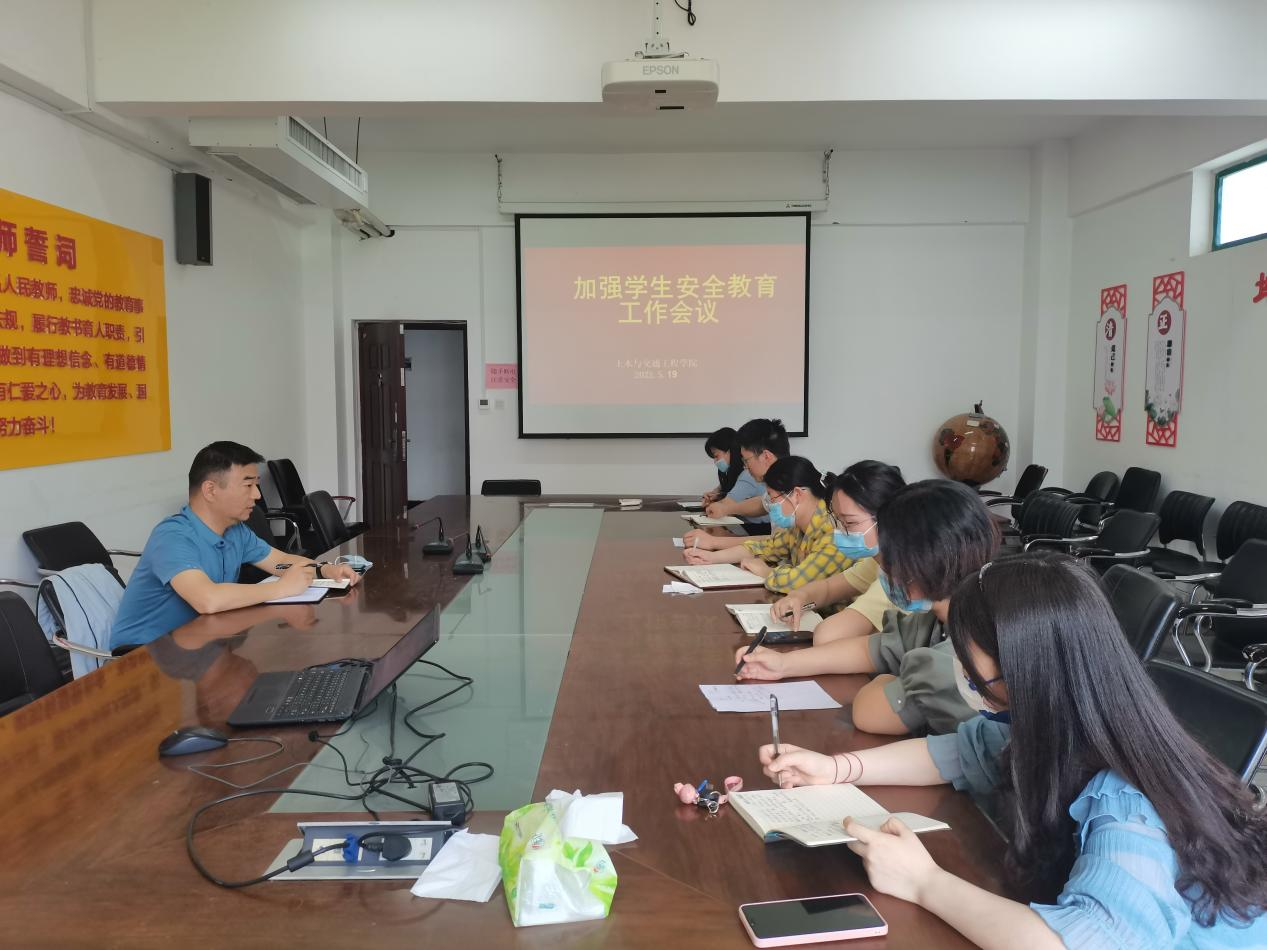 5月19日中午14:10,学院党总支副书记管欣组织辅导员在SY5330会议室召开加强学生安全教育工作会议。会上,管书记传达了校学生处文件《关于进一步加强学生安全教育工作的通知》,强调要做好学生疫情防控教育、人身安全教育、交通安全教育、防火放电放气教育、饮食安全教育、运动安全教育财产安全教育、心理健康教育以及女生自我保护教育,并就《通知》的落实做了布置和安排。会议还就学生宿舍整合及学生离校方方面面的事项进行了沟通、讨论、要点提示及安排。