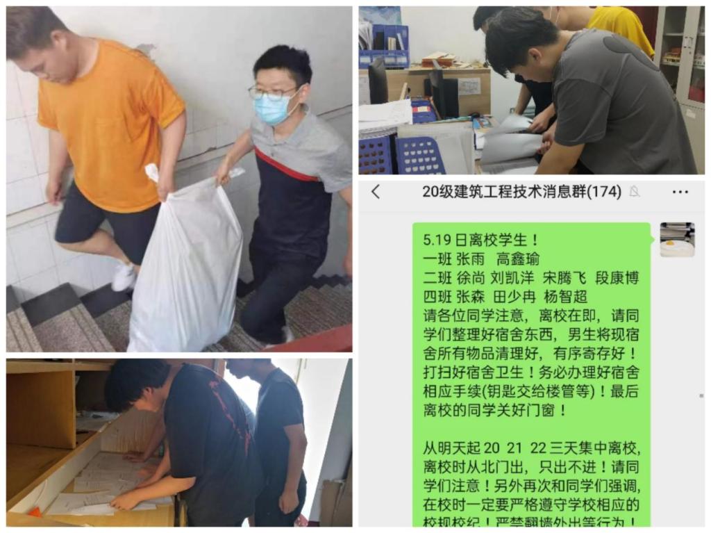 考虑到近期疫情形式严峻,各地防疫的需要,学院为每位同学提供离校返乡证明,方便了他们的出行;为帮助学生搬迁宿舍和保障学生安全离校,学院购置了一批行李袋,免费发放给学生,供他们放置个人物品,且辅导员深入宿舍暖心帮助同学们搬运物品。辅导员作为学生的“通讯员”、“疏导员”、“定心丸”和“勤务兵”,用真诚的陪伴、真心的守护,关心着每一位同学。