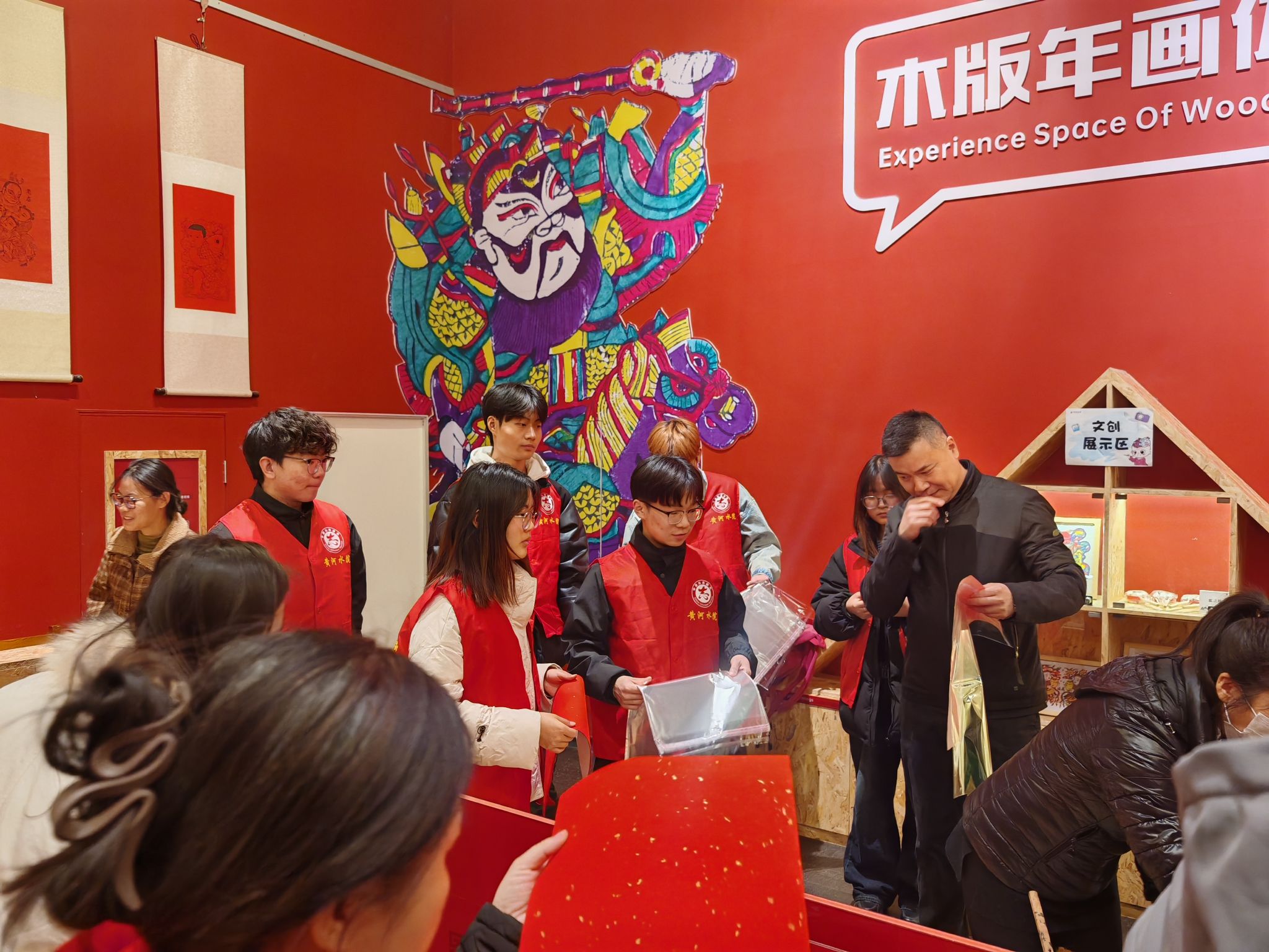 活动现场,志愿者们身着统一服装,以饱满的热情投入到服务中。他们化身木版年画的“文化使者”,向每一位驻足的参观者娓娓道来木版年画那跨越千年的历史。同时,他们着重阐述了木版年画作为春节文化载体的重要价值 —— 它不仅是民间艺术的瑰宝,更承载着人们对新年的美好期盼与祝福,是春节期间不可或缺的文化符号,让参观者们对这一传统艺术有了更深刻的认识。