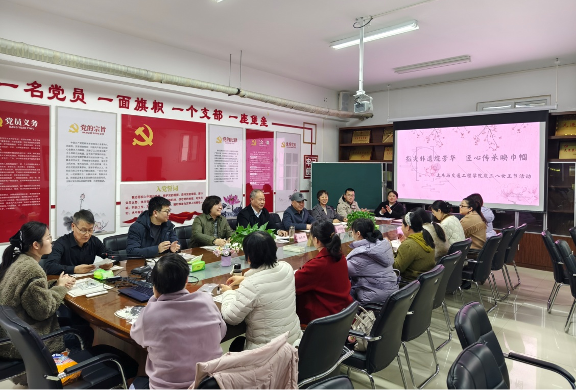 为庆祝第115个“三八”国际劳动妇女节,弘扬中华优秀传统文化,展现女性教职工风采,3月8日,土木与交通工程学院分工会精心策划了一场以“指尖非遗绽芳华,匠心传承映巾帼”为主题的女教职工非遗手作体验活动。校党委副书记、工会主席杨士恒,校工会副主席田万涛、翟志华出席活动。