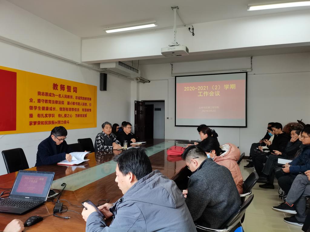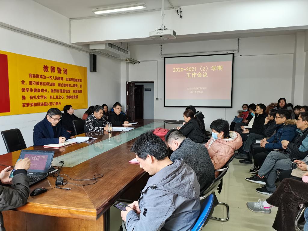 2021年3月2日下午15:00,土木与交通工程学院在会议室5330召开新学期工作会议,学院全体教职工参加会议,会议由院长王付全主持。
