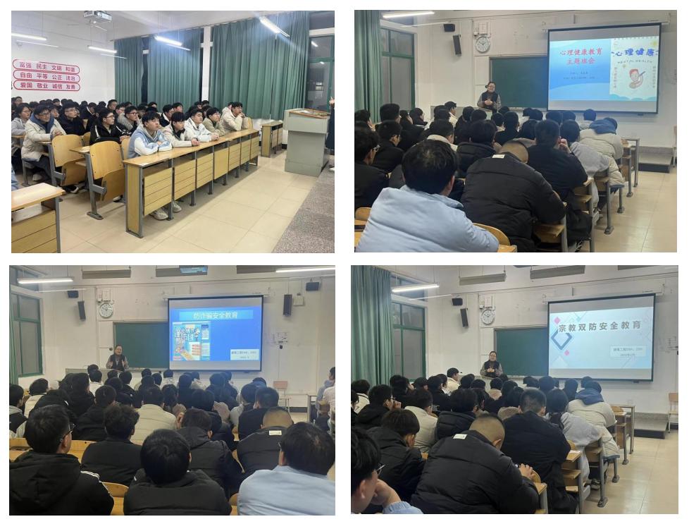 主题班会主要围绕爱国主义、健康安全宣传教育、法律法规和校规校纪教育、心理健康、生涯规划和就业指导教育等方面展开。带领学生通过学习“这些年,习近平总书记对青年的青春寄语”,从学中强化爱国教育,从看中感悟青春共鸣,树立全力以赴、敢打敢拼、自强不息、永不止步的青年信念;结合当前学校管理形式,引导学生外出要注意交通安全,遵守交通规则,遇事冷静处理;引导学生养成积极乐观的心态,更快适应家校环境的转换,制定新学期学习计划,努力丰富自我、发展自我、成就自我;结合春季传染病防治知识,向学生讲述流行性感冒、水痘、诺如病毒等校园常见传染病的传播方式和预防知识,提醒学生在日常学习生活中要注意宿舍卫生和饮食安全,注重个人健康;为防范校园网络诈骗,通过生动鲜活的案例展示,让学生了解几种常见的电信诈骗类型,提高学生们对各种诈骗手法的识别和防范能力,保护学生的财产安全,营造平安和谐的校园环境;督促学生及时检查学分修习情况,引导学生对新学期学习进行合理规划。