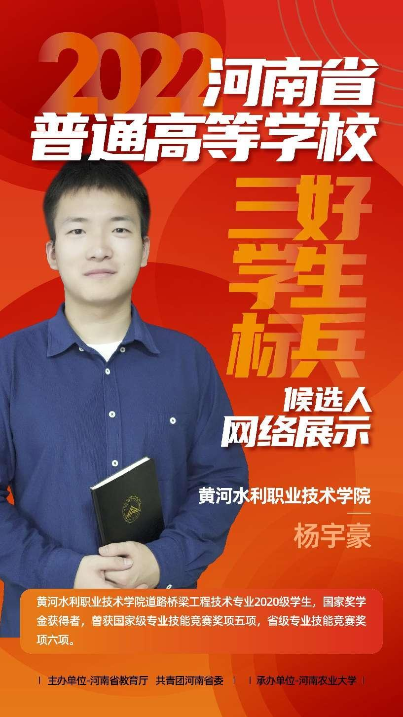 青春是一首歌,她拨动着我们年轻的心弦;青春是一团火,她点燃了我们沸腾的热血;青春是一面旗帜,她召唤着我们勇敢前行;青春是一本教科书,她启迪着我们的智慧和心灵。让我们走进土木与交通工程学院2020级学生,河南省三好学生标兵杨宇豪的生活,来看一下他是如何谱写自己的青春