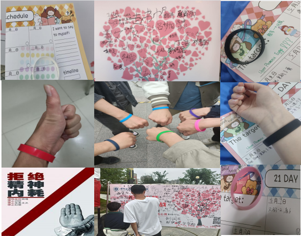 内耗,指内部消耗,特指因内部纠葛而形成的无谓消耗。内耗是最消耗能量的无益举动,内耗不如改变。为帮助我院学生消退内耗,让自己的生活充满平静喜乐、活力四射的正面能量。从而增强大学生的自我调试能力,提高大学生的心理素质,我院于5月5日——5月25日认真组织学生参与了“拒绝内耗,21天打卡活动”,通过厌恶疗法中的“橡皮圈”疗法,进行一个厌恶性刺激,从而消退目标行为和不良情绪对当事人的注意力,使内耗状况消退。