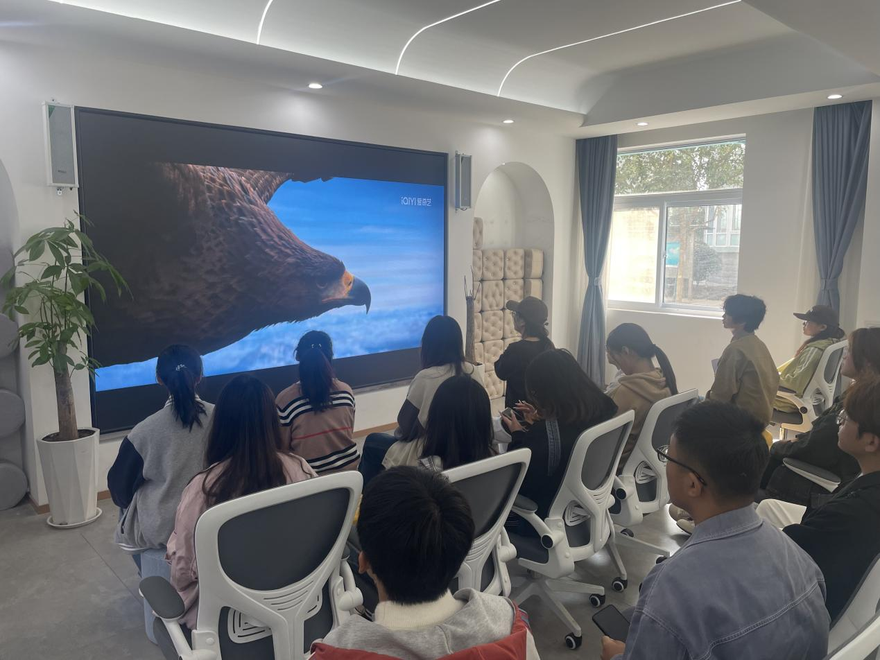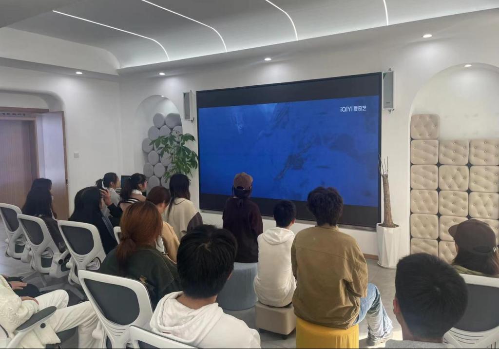 在指导老师及助理们的指引下,学生们一同观看电影《长安三万里》,会场气氛积极融洽,同学们将个人的亲身经历与在场同学进行讨论。