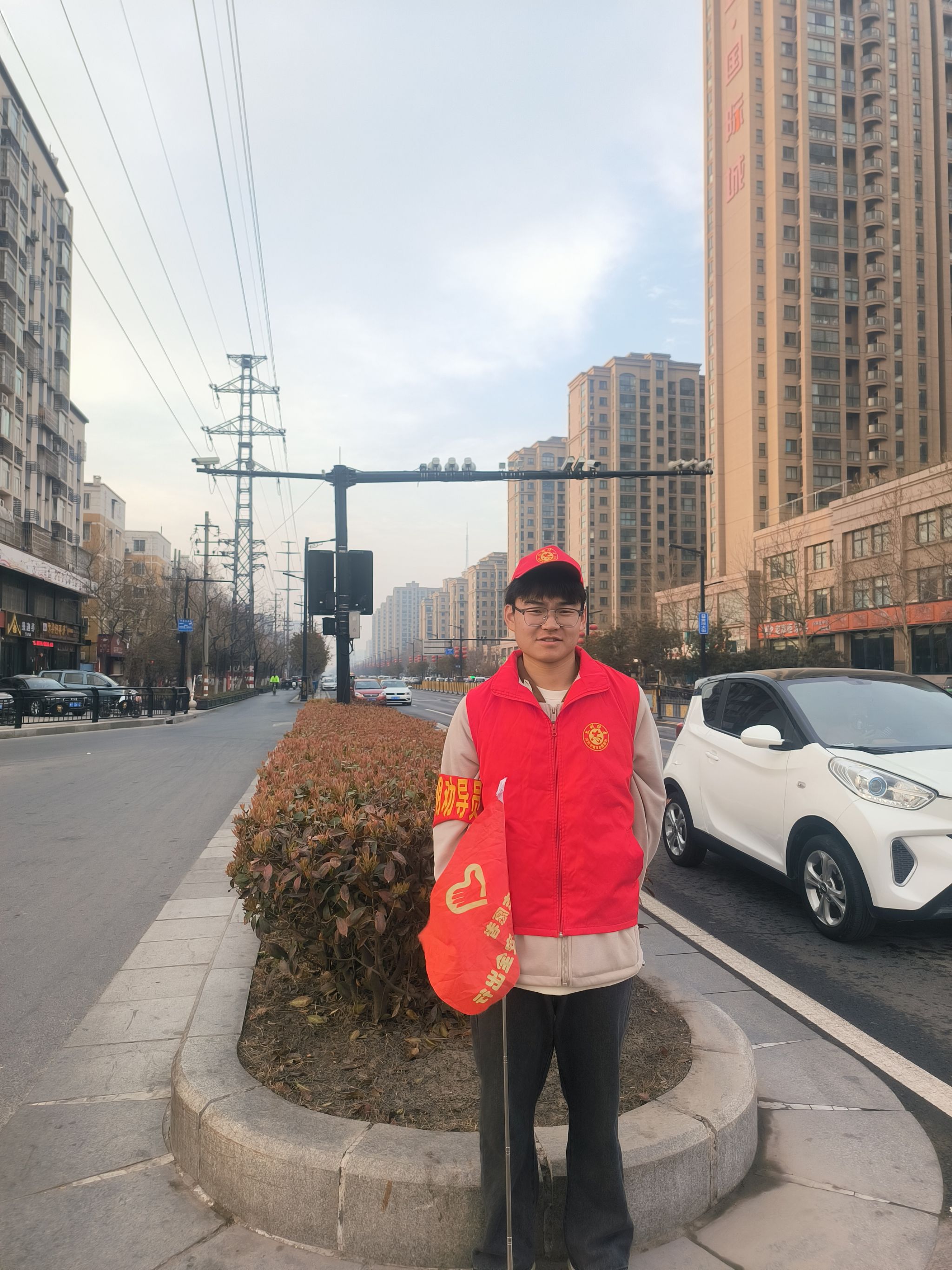 在此次志愿服务活动中,我院学子深入到市区各大交通繁忙路口、公交站点以及社区周边,他们身披志愿者马甲,手持指挥旗,引导行人遵守交通规则,倡导文明出行。他们耐心劝导过往群众不闯红灯,要礼让行人,同时协助交警维护道路交通秩序,确保市民出行安全顺畅。