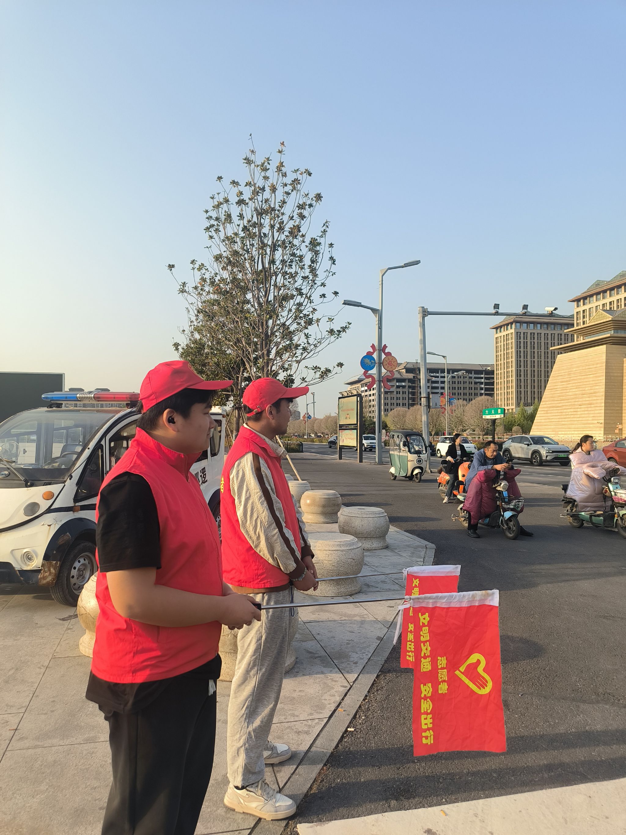 在志愿服务过程中同学们身穿志愿者马甲,手持交通引导旗,在人流量较大的路口协助交警维持交通秩序,提醒行人遵守信号灯、走斑马线,劝导非机动车按规定车道行驶,制止电动车骑行者不戴头盔等不文明行为。在亲身参与中,同学们不仅锻炼了实践能力,更深刻体会到了文明交通对于保障生命安全、提升城市形象的重要意义。