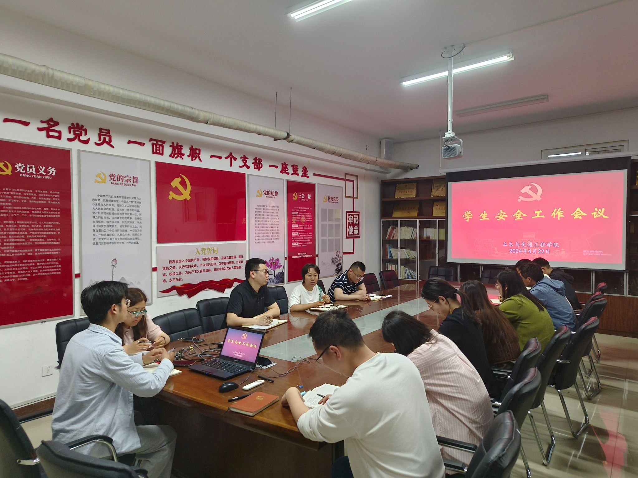 为进一步强化学生的安全意识,构建更加坚固的安全防护网,确保每一位学生的健康成长与学习环境的和谐稳定,土木与交通工程学院于4月22日在SY5319召开学生安全工作会议。学院党总支书记耿亚杰、学院党总支副书记孟宪金、学院副院长职保平、学院分团委书记朱一飞及全体辅导员参加会议。
