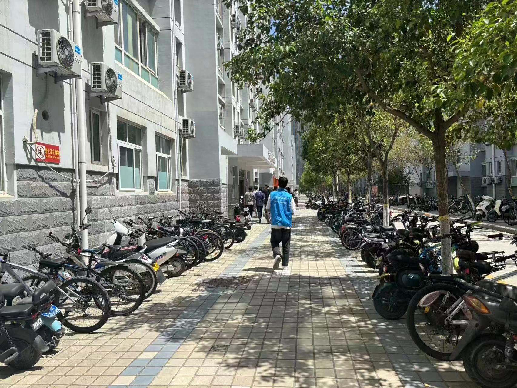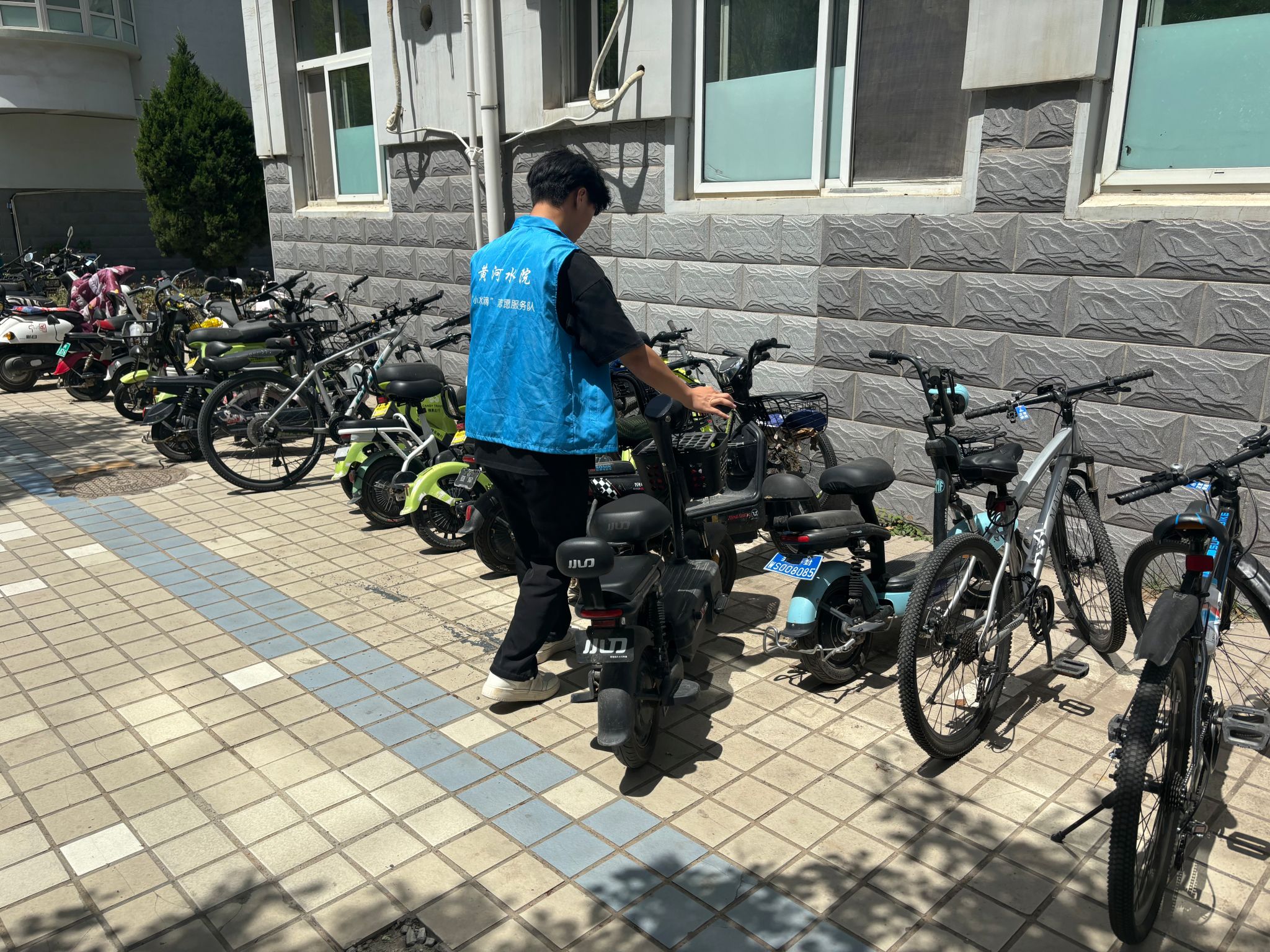 活动过程中,志愿者们分工明确,身着统一的志愿服装,分组对宿舍区域内的自行车、电动车进行了全面的整理和摆放规整。有的负责引导车主正确停放车辆,耐心讲解文明停车的重要性;有的则动手将随意停放的车辆移至指定区域,确保每一辆车都按照规划好的停车位整齐排列。在他们的共同努力下,原本杂乱无章的宿舍门前变得井然有序,一条条清晰的停车线映衬出校园的新风貌。