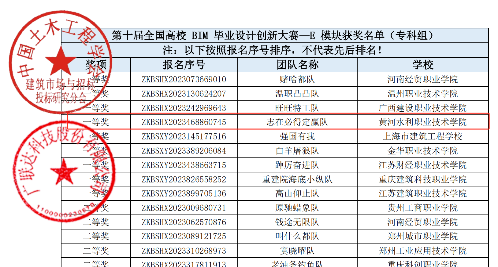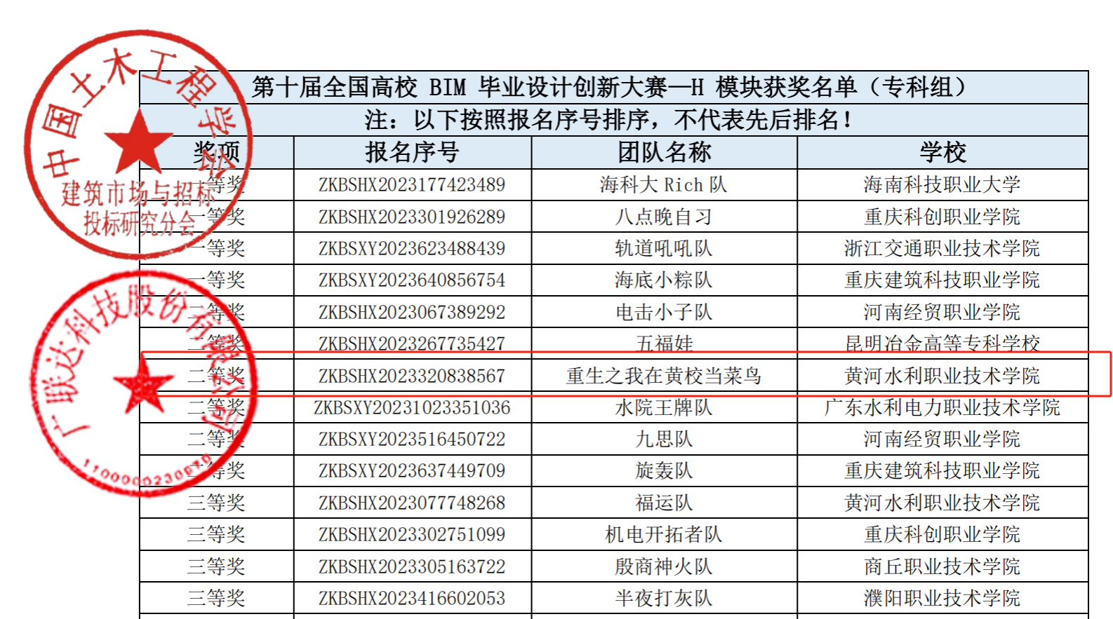 BIM毕业设计获奖名单