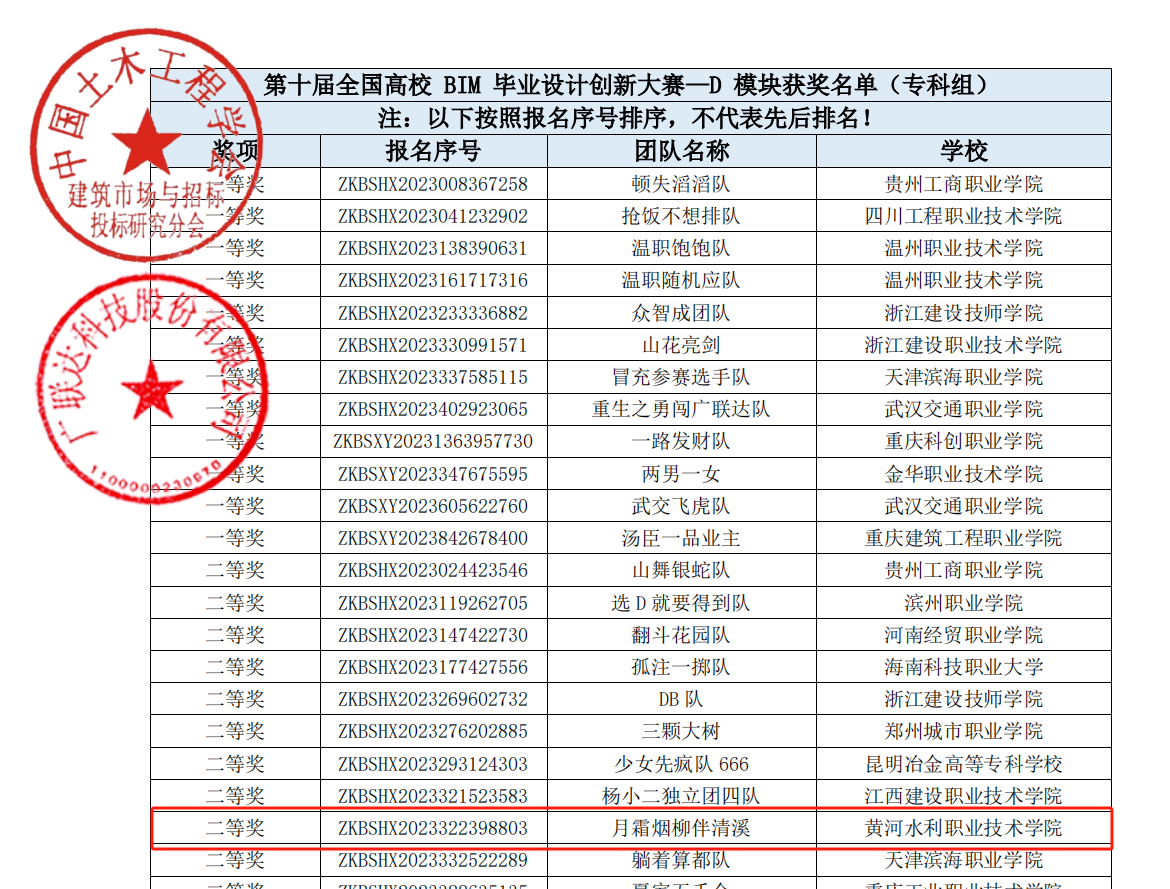在2024年第十届全国高校BIM毕业设计创新大赛中,土木与交通工程学院工程造价专业教师团队指导学生参加A、D、E、H四个模块,获两个一等奖,两个二等奖的好成绩!