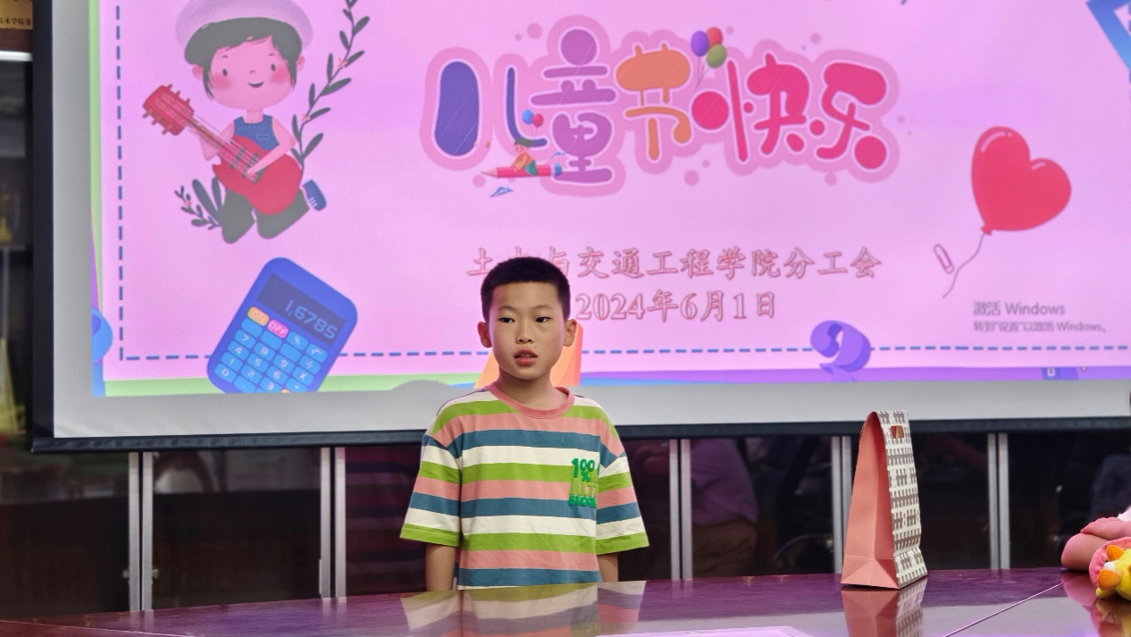 2024年6月1日,土木与交通工程学院分工会于SY5319会议室成功举办了一场别开生面的“六一特别关爱”活动。本次活动以“关爱成长、快乐六一”为主题,旨在为广大教职工子女提供一个展示才艺、享受欢乐时光的平台,同时增强教职工之间的交流与联系。
