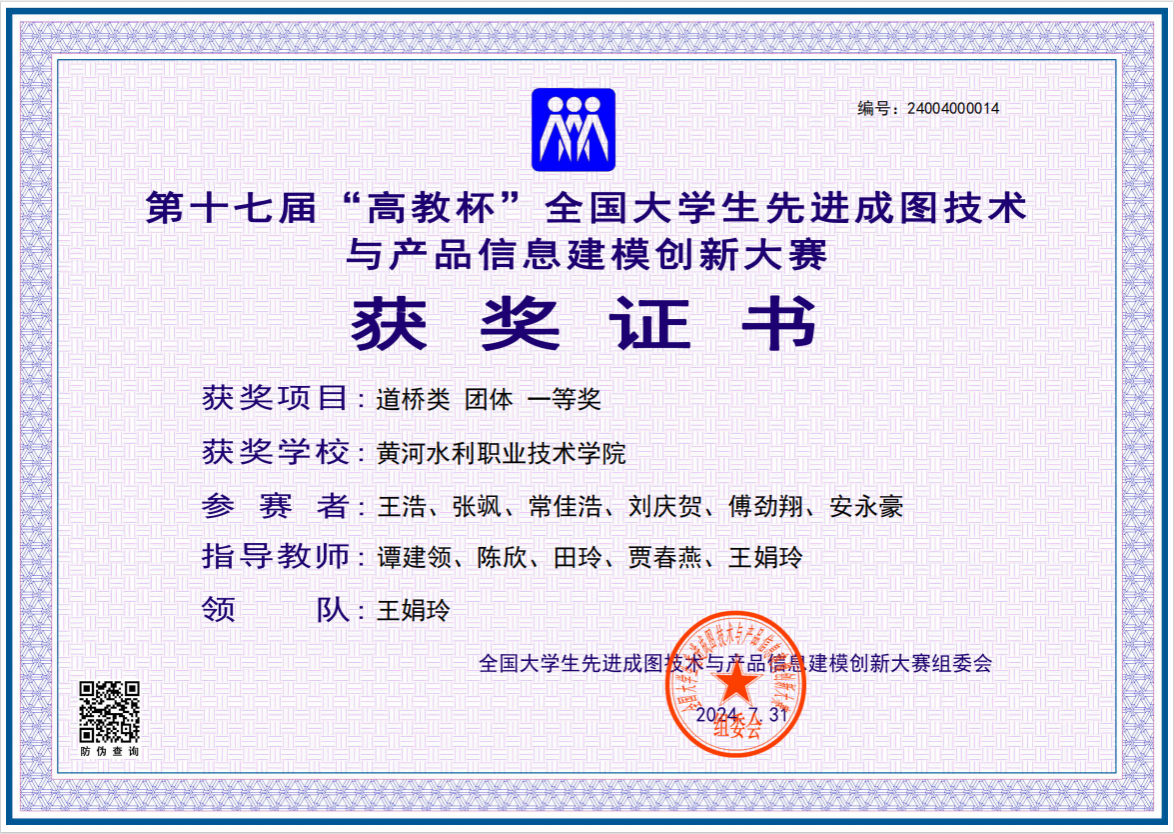 土木与交通工程学院组建2支代表队,参加了道桥、建筑两个类别的成图赛道和创新赛道的比赛。经过激烈角逐,2个代表队分别斩获成图赛道的道桥类和建筑类团体一等奖;获得道桥类桥梁数字化创新设计赛道一等奖、建筑类BIM创新应用赛道三等奖的优异成绩,共获得团体一等奖3项、三等奖1项,个人一等奖7项,个人二等奖1项,个人三等奖7项。