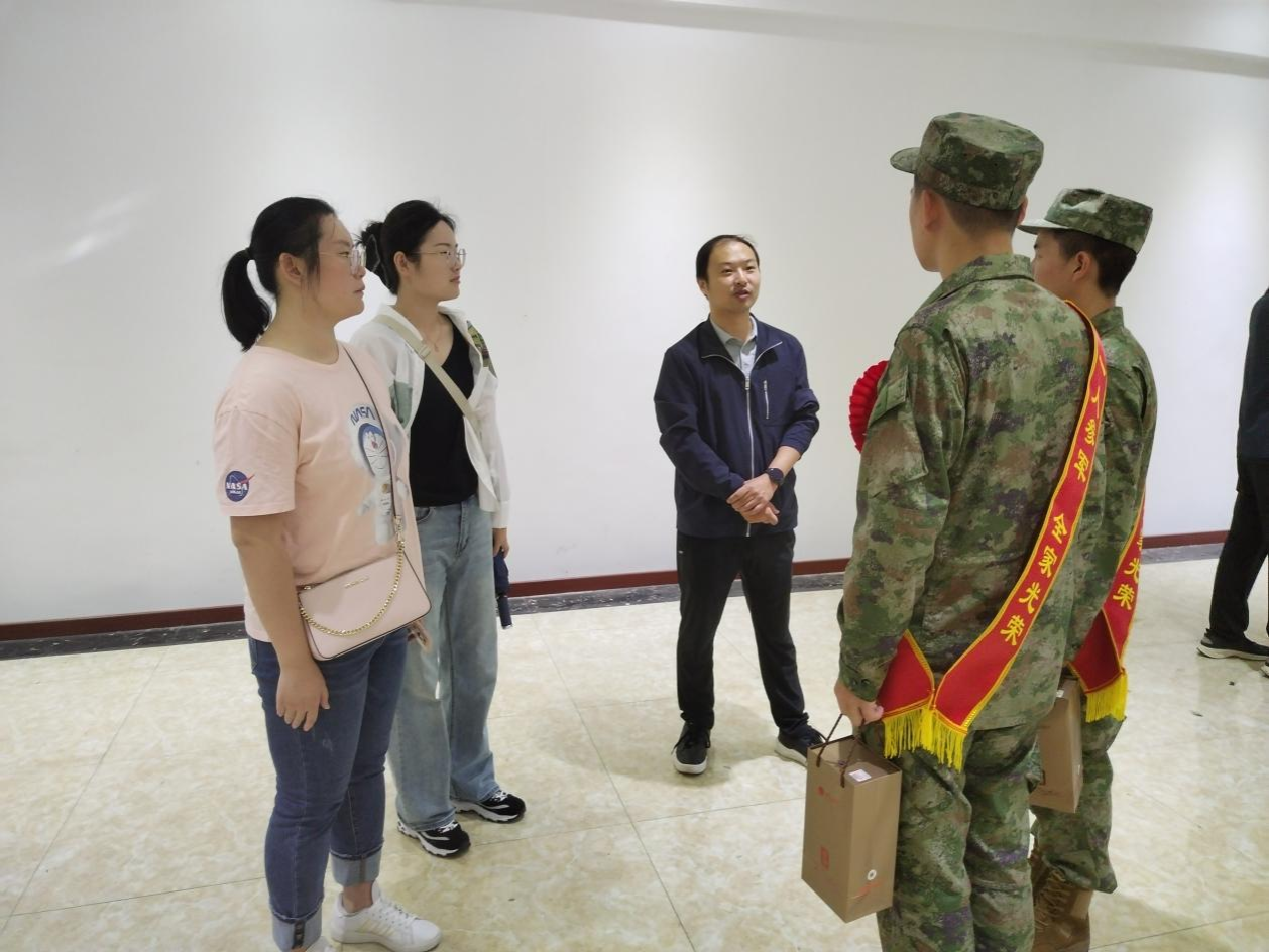 在简短而庄重的仪式上,学院分团委书记朱一飞老师肯定了他们响应国家号召、投身国防建设的壮志豪情,赞扬了他们携笔从戎、报效祖国的精神风貌。随后,辅导员与新兵们亲切交谈,详细了解他们的训练生活情况,鼓励他们在接下来的日子里发扬不怕苦、不怕累的精神,为实现强军梦贡献力量。