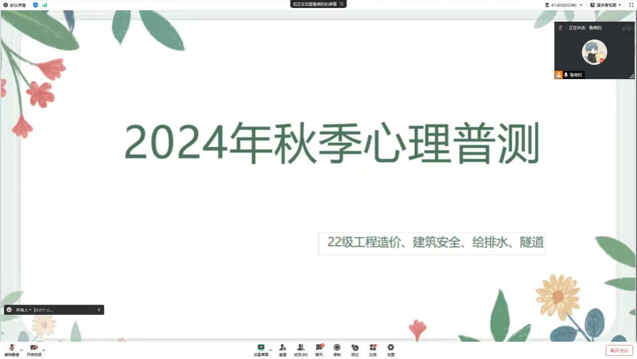 为了进一步加强我院心理健康教育工作,全面了解学生的心理健康状况,提高心理普测工作的科学性、针对性和有效性,土木与交通工程学院于2024年9月19日起组织全院学生开展2024年秋季心理健康普测。