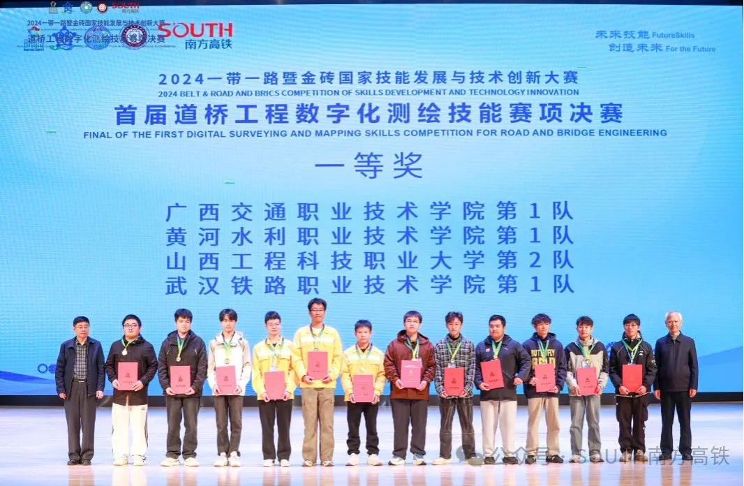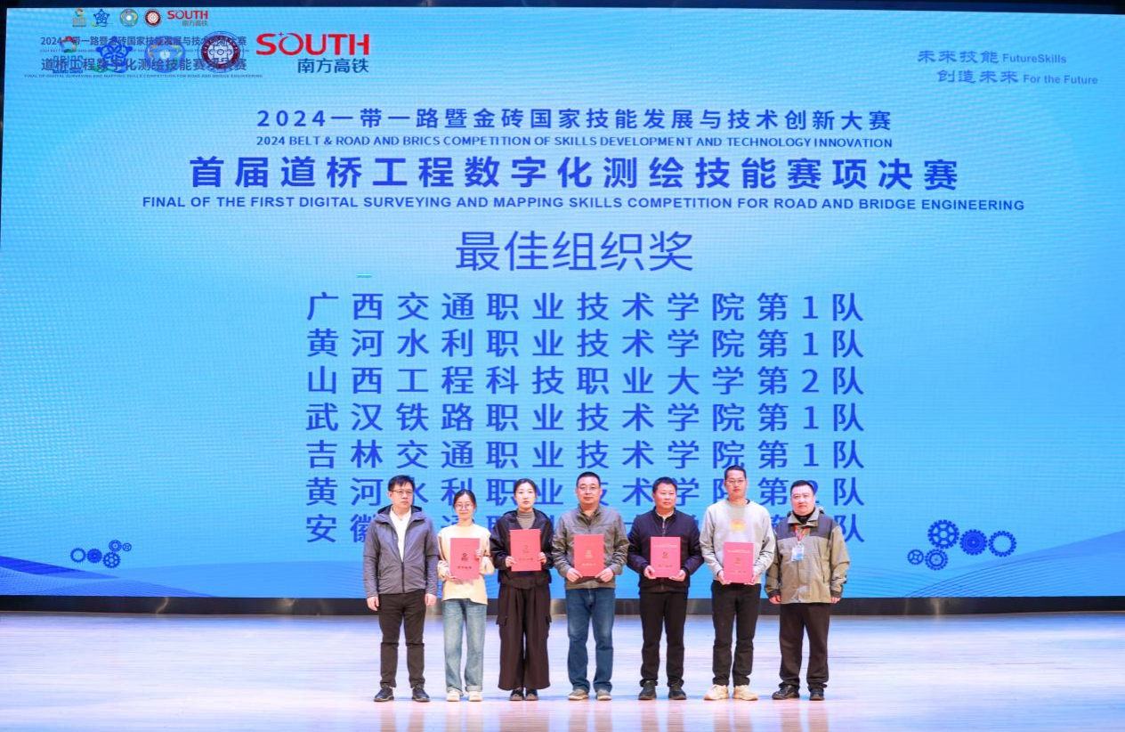 10月17-21日,2024一带一路暨金砖国家技能发展与技术创新大赛之首届道桥数字化测绘技能赛项决赛在辽宁沈阳正式开幕!来自全国45所高职院校的77支参赛队伍200余名选手决战盛京城。我校两支参赛队奋勇拼搏,分别以第2名和第6名的总成绩双双获得一等奖,学校获“最佳组织奖”。