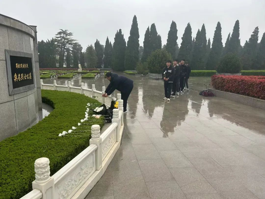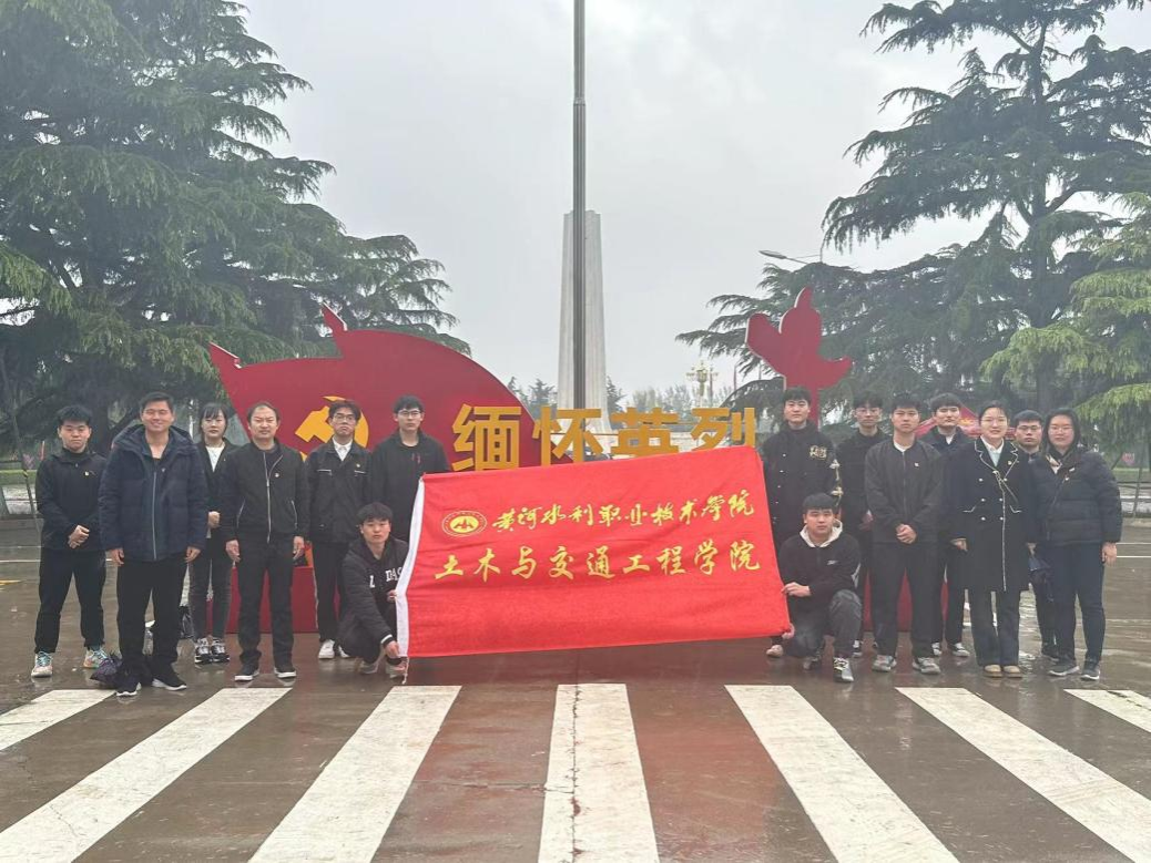 清明节到来之际,为缅怀革命先烈,弘扬爱国主义精神,4月3日上午,土木与交通工程学院分团委书记朱一飞、学生土木交通三支部书记王嘉琪、教师党员张艺博和云宇带领学生党员及团学干部赴开封市烈士陵园开展“清明祭英烈 共铸中华魂”主题教育活动,以实际行动传承红色基因。在烈士纪念碑下,大家庄重肃穆,面向烈士纪念碑默哀,为革命先烈敬献鲜花,向先烈表达崇高敬意和深切缅怀,铭记他们为之流血牺牲的伟大理想,更铭记他们用生命和热血换来的幸福生活。清明时节,在这个慎终追远、思古怀今的特殊时刻,最不能忘记的是那些为民族独立和解放,为国家繁荣和富强,为人民幸福和安康,抛头颅洒热血的革命先辈和人民英雄。学院开展此次主题教育活动,就是要在抚今追昔中铭记革命先烈事迹,继承革命先烈遗志,弘扬革命英烈精神,将学生的思想政治教育、理想信念教育和爱国主义教育落到实处,将全员全过程全方位育人理念做深做实。我们在今后的学习工作中也必将继承先烈遗志,汇聚奋进力量,继续争先创优,对标先进,以饱满的学习精神和工作态度不断进取勇拼搏,奋楫再造新传奇。