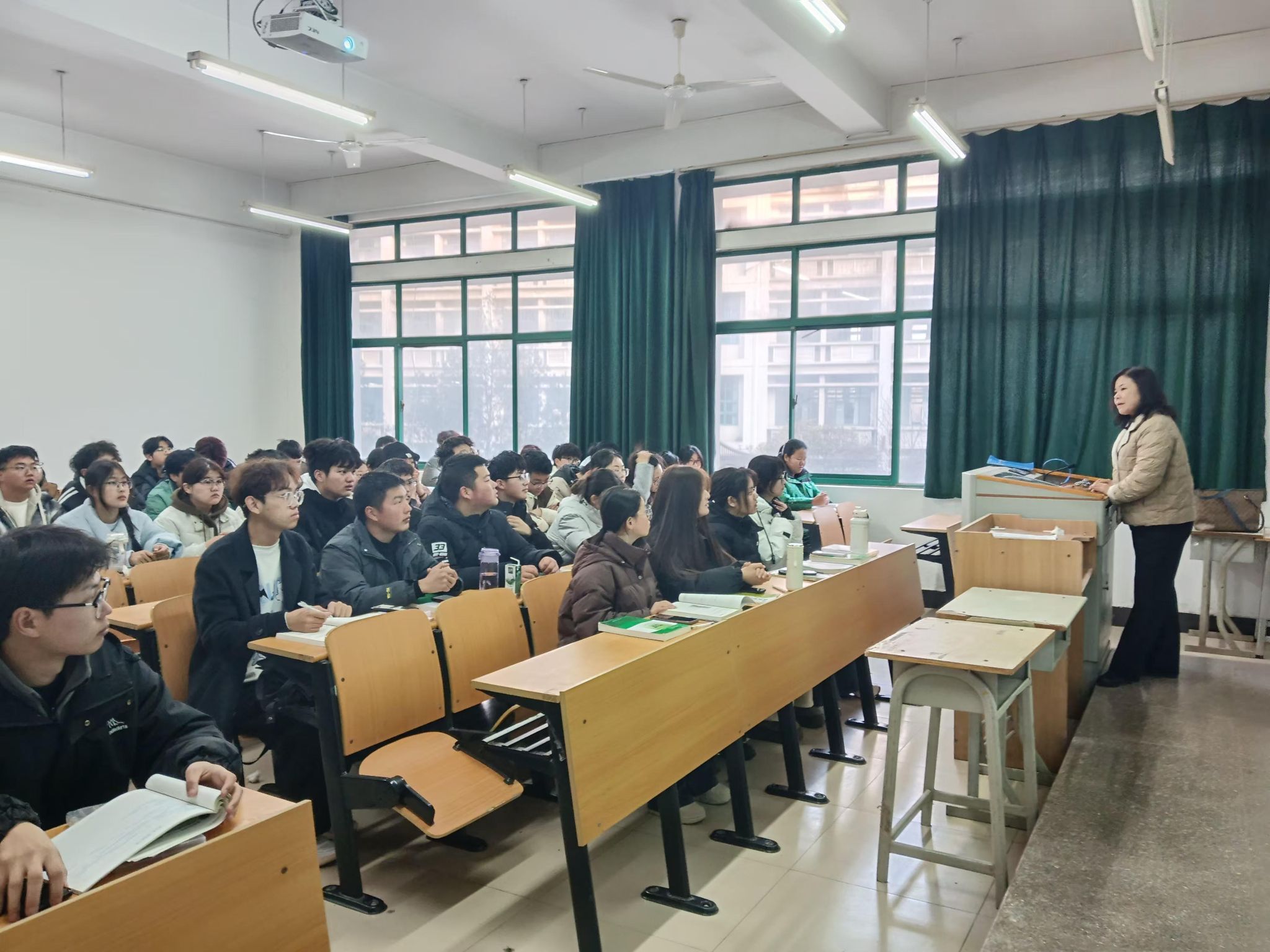 学院班子陪同校领导重点检查了教师备课、课堂授课、学生出勤及教学环境维护等情况。从检查情况看,学院期初教学秩序井然,教师授课准备充分,学生到课率高,课堂氛围活跃,教学设施运行正常,展现出良好的教风学风。