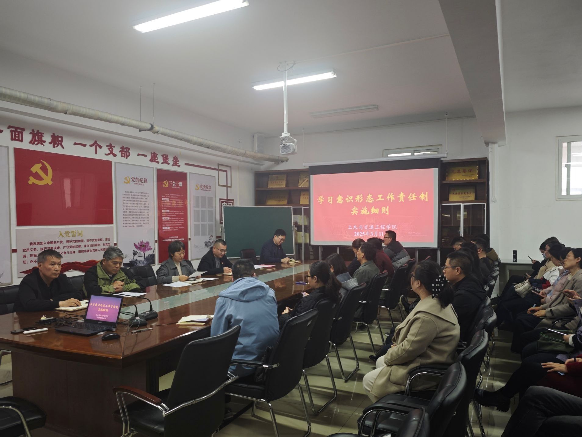 为贯彻落实《黄河水院2025年上半年政治理论学习及思想道德教育计划》学习要求,进一步提升教职工理论学习的制度化和规范化水平和政治理论素养。3月11日,土木与交通工程学院组织教职工专题学习学校关于意识形态工作责任制的实施细则和网络意识形态工作责任制实施细则。