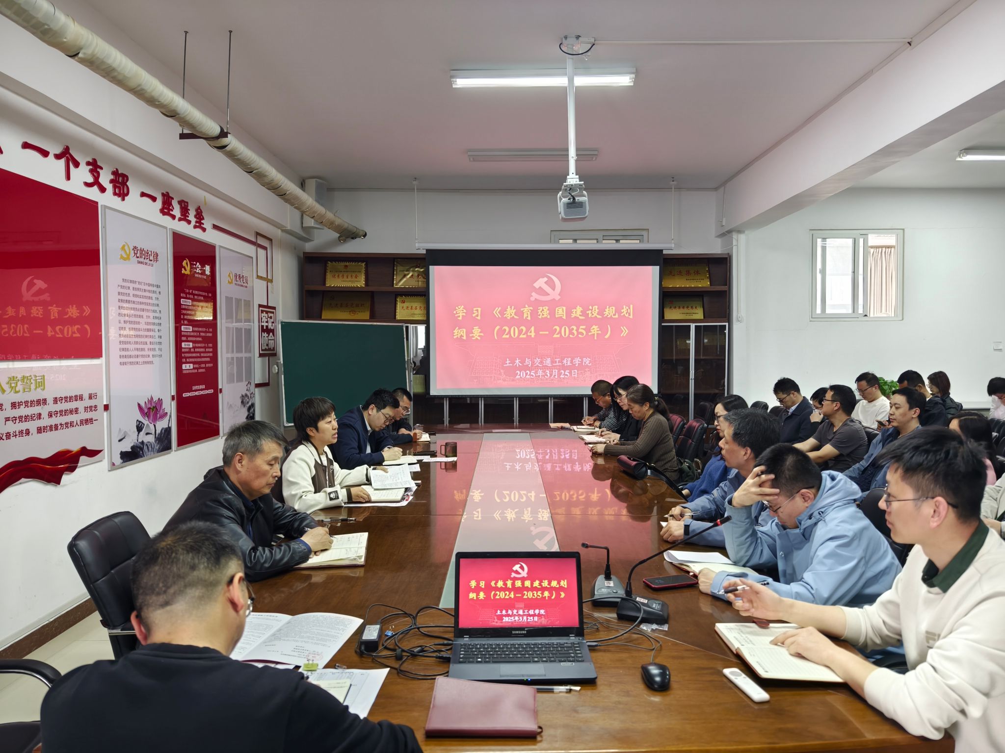 为贯彻落实《黄河水院2025年上半年政治理论学习及思想道德教育计划》学习要求,进一步提升教职工理论学习的制度化和规范化水平和政治理论素养。3月25日,土木与交通工程学院组织教职工专题学习2025年全国教育工作会议精神、中共中央 国务院印发《教育强国建设规划纲要(2024—2035年)》和全国宣传思想文化工作会议精神。