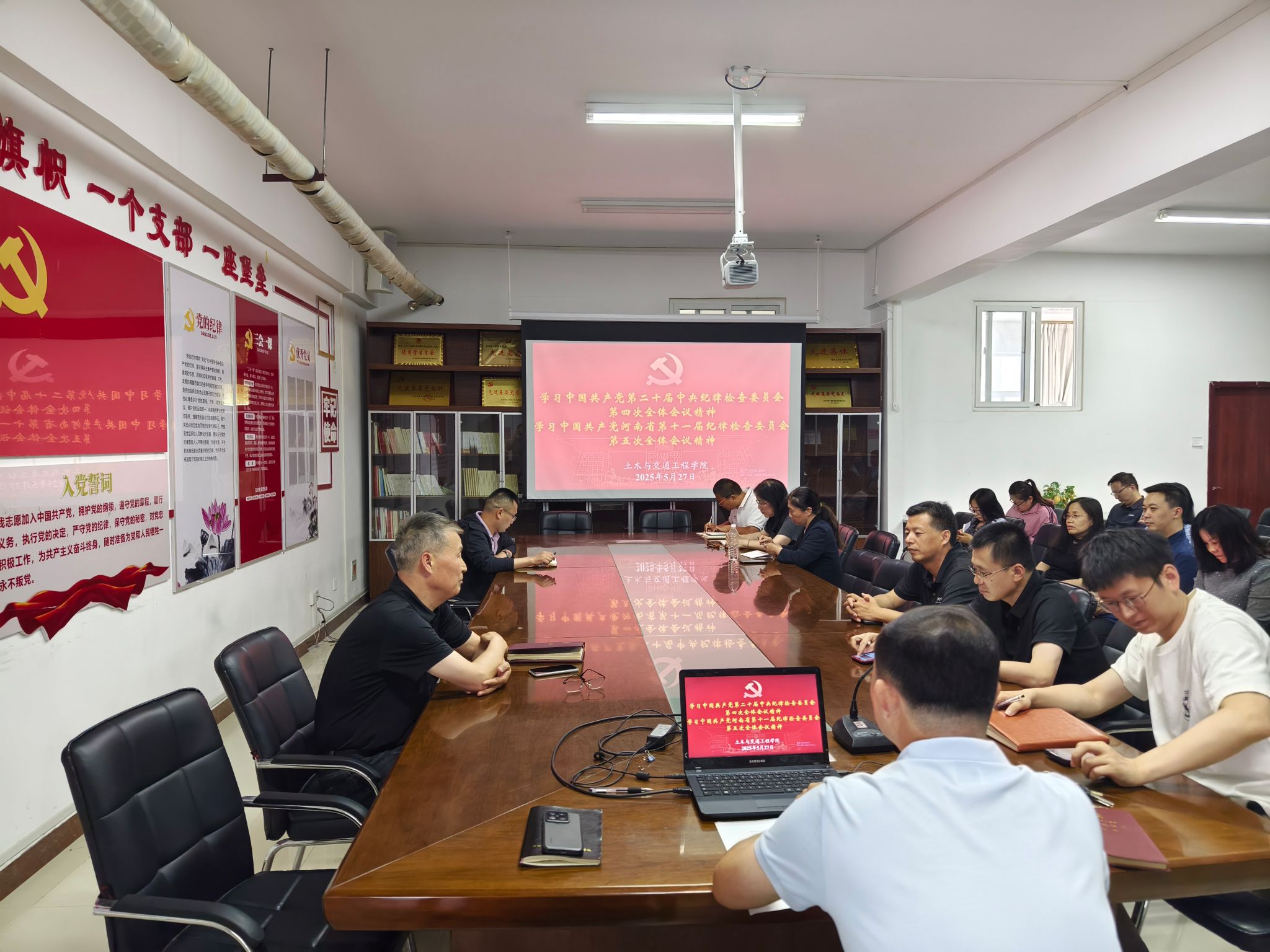 为贯彻落实《黄河水院2025年上半年政治理论学习及思想道德教育计划》学习要求,5月27日,土木与交通工程学院组织教职工专题学习中国共产党第二十届中央纪律检查委员会第四次全体会议精神和中国共产党河南省第十一届纪律检查委员会第五次全体会议精神,进一步促进党员干部和党员教师强化纪律规矩意识,切实增强深入贯彻中央八项规定精神的政治自觉、思想自觉和行动自觉,为我院教育事业高质量发展提供保障。