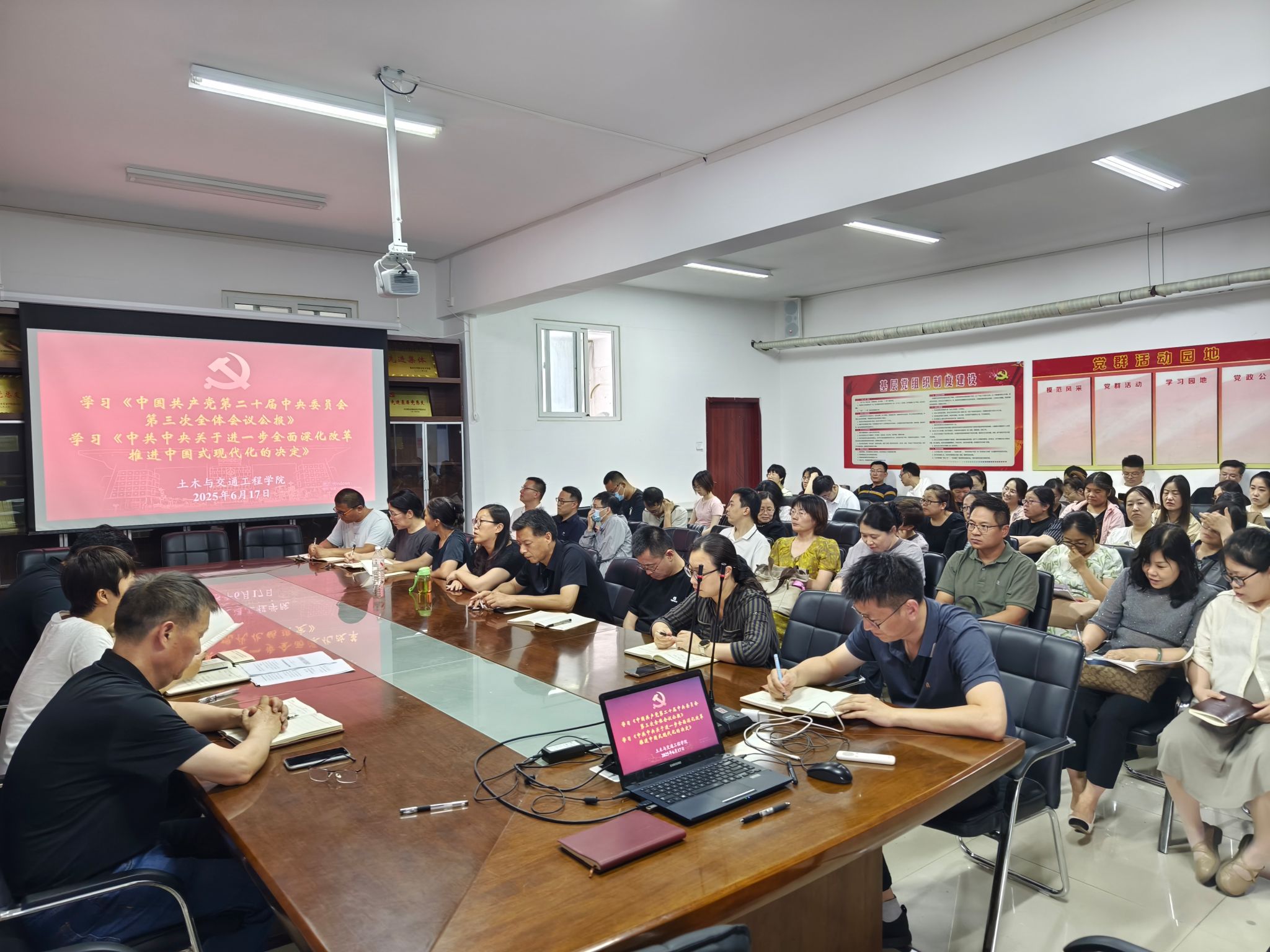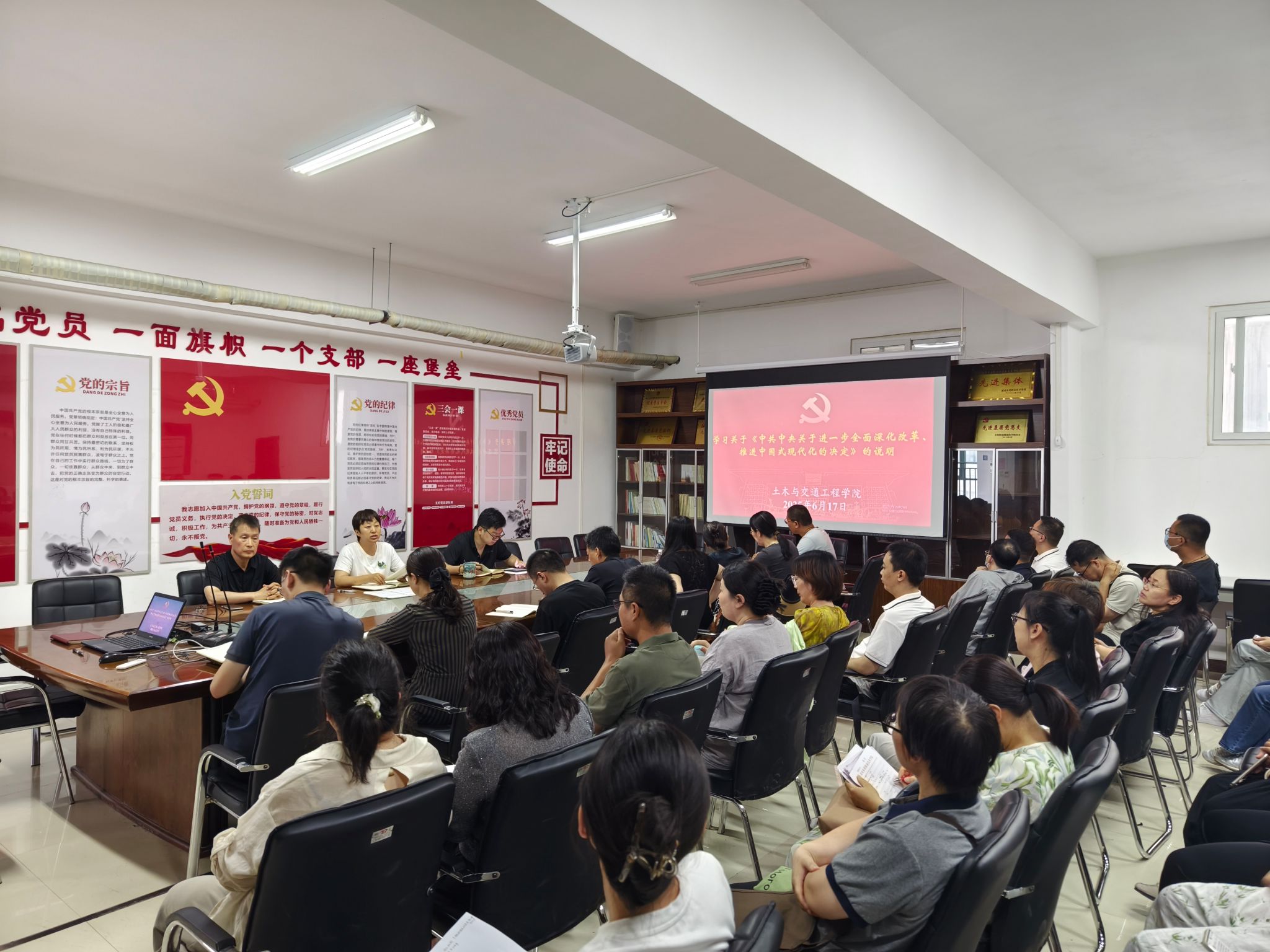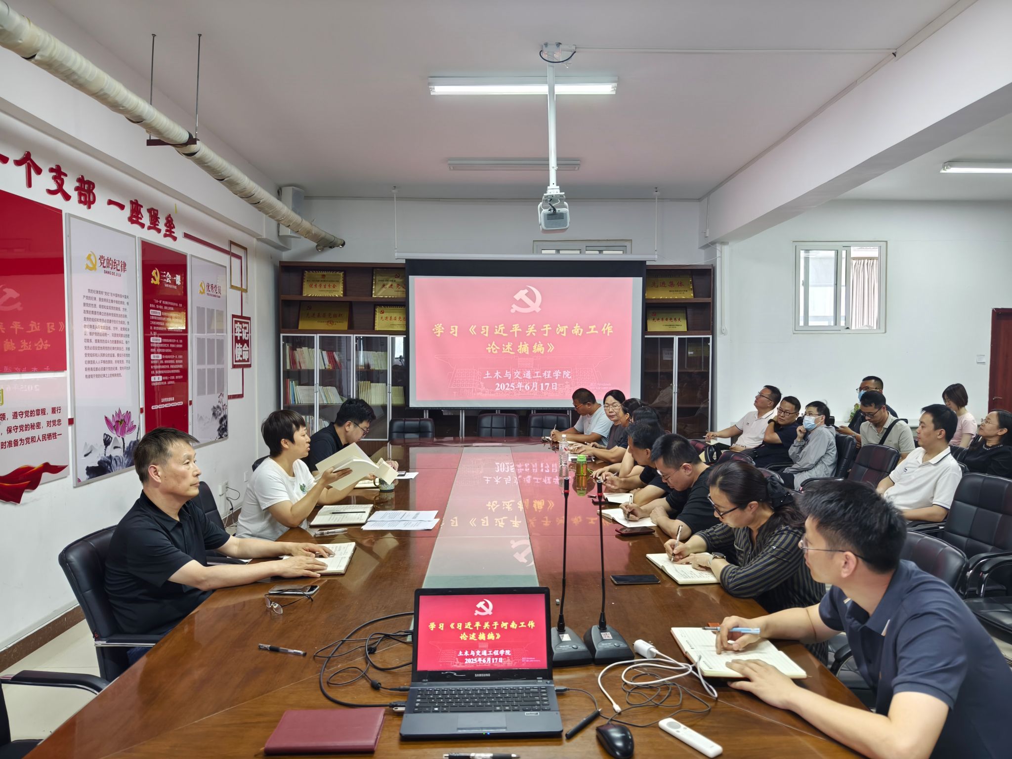为贯彻落实《黄河水院2025年上半年政治理论学习及思想道德教育计划》学习要求,6月17日,土木与交通工程学院组织教职工专题学习《习近平关于河南工作论述摘编》《中国共产党第二十届中央委员会第三次全体会议公报》《中共中央关于进一步全面深化改革、推进中国式现代化的决定》以及习近平总书记关于《中共中央关于进一步全面深化改革、推进中国式现代化的决定》的说明,认真学习贯彻习近平总书记关于河南工作的重要讲话和重要指示批示精神,不断增强师生深刻领悟“两个确立”的决定性意义,坚决做到“两个维护”,切实把思想和行动统一到全会精神上来,进一步推进学校全面深化改革工作,实现学校高质量发展。