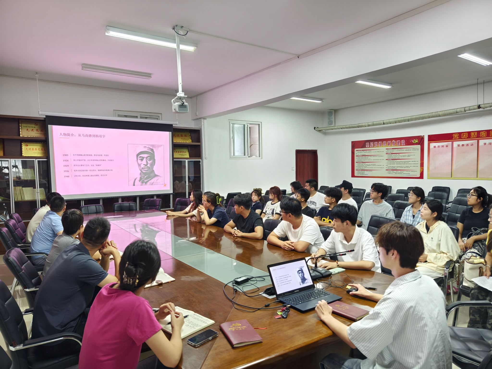 座谈会上,胡天赐同学讲述了杨靖宇将军英勇抗日的感人事迹,在冰天雪地、弹尽粮绝的极端环境下,杨靖宇将军仍率领东北抗日联军顽强作战,直至生命最后一刻。他的英雄气概和坚定信仰,深深震撼了在场的每一位同学。