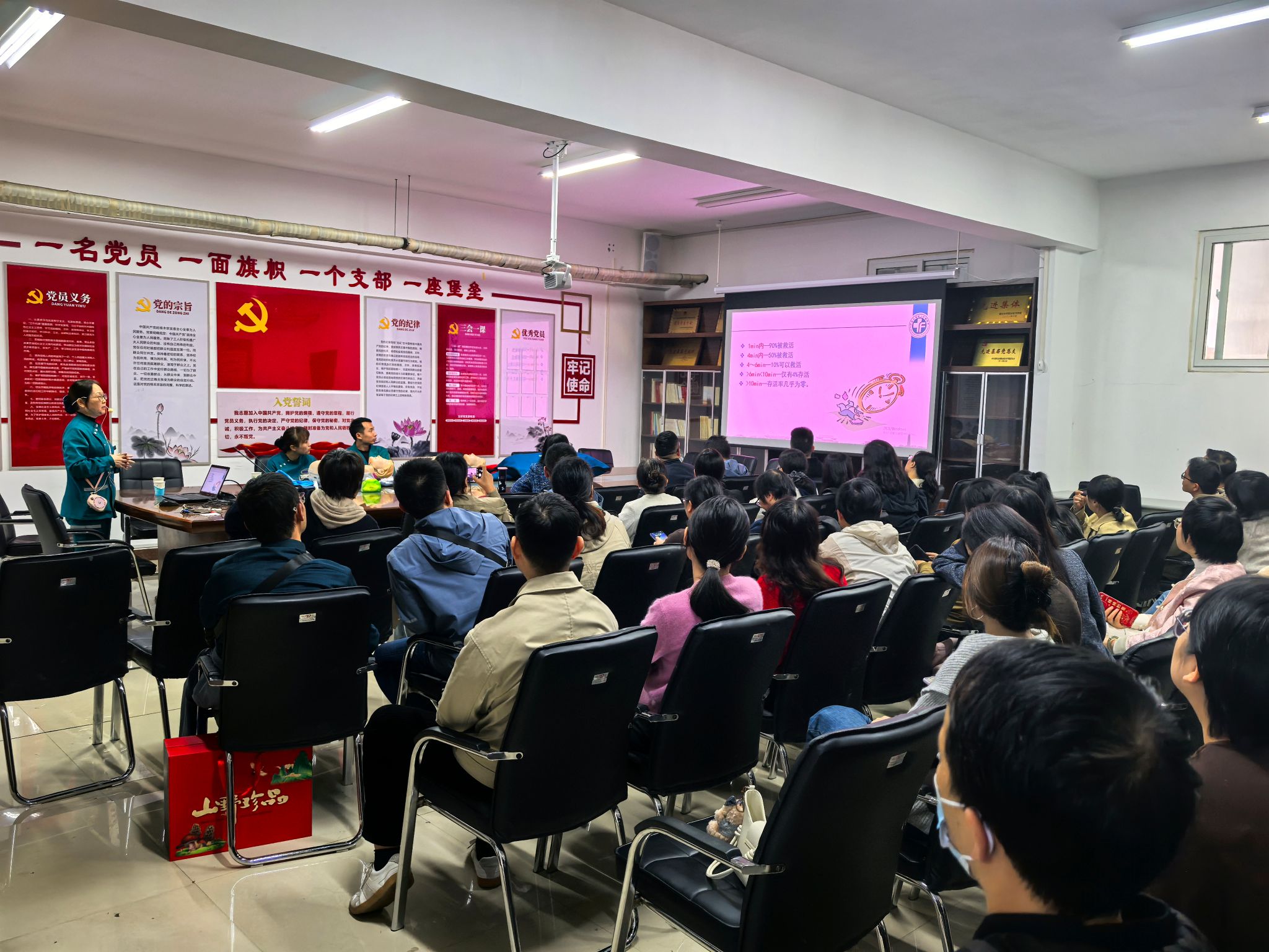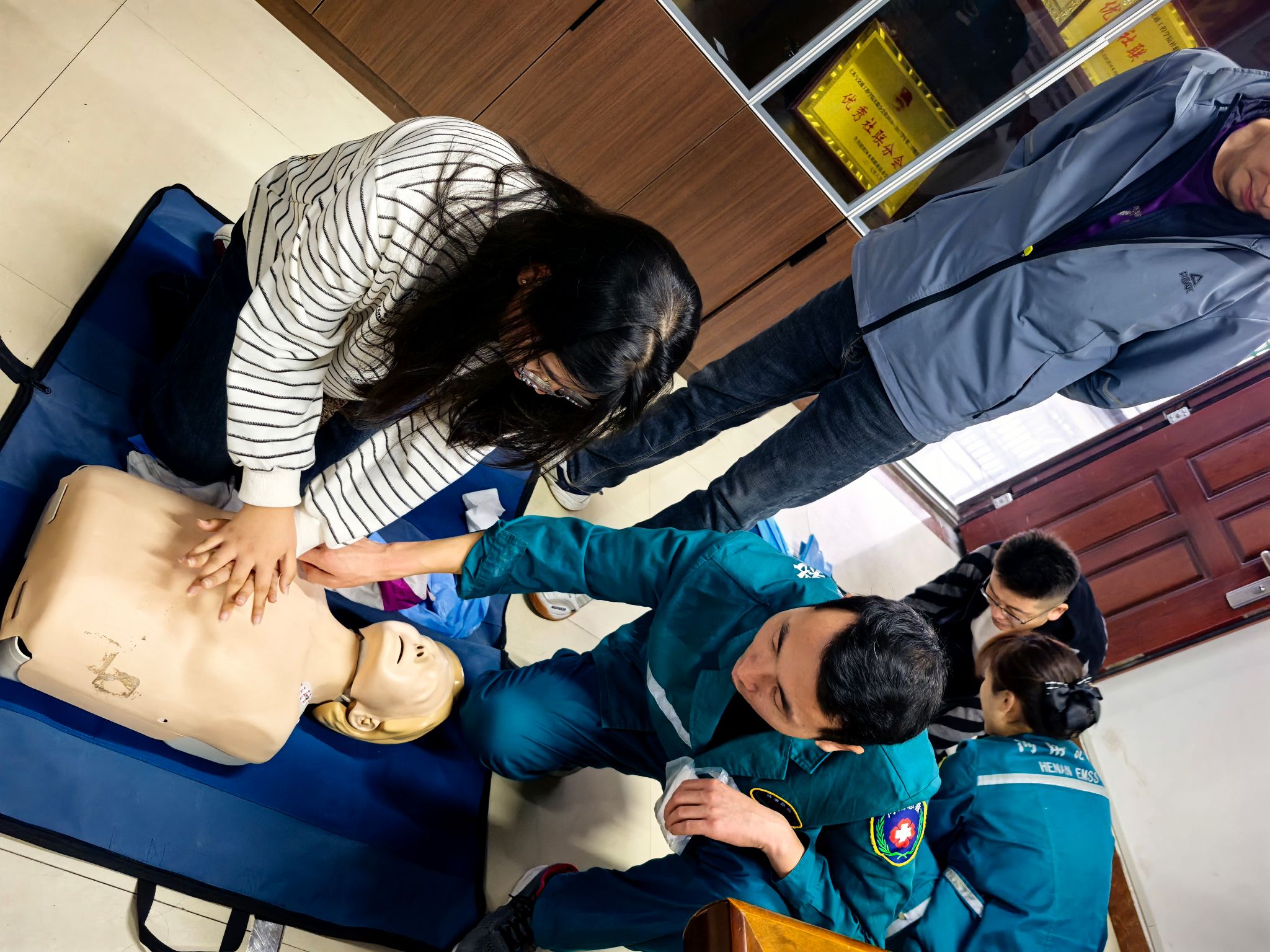 此次培训旨在普及应急救护知识,提升教职工应对突发状况的能力。培训中,急救科医生通过理论讲解与模拟操作相结合的方式,重点讲授并演示了心肺复苏(CPR)的标准流程、人工呼吸的正确方法以及自动体外除颤器(AED)的使用步骤等关键急救技能。教职工们认真聆听,并在医生指导下积极参与实操练习,现场学习氛围浓厚。